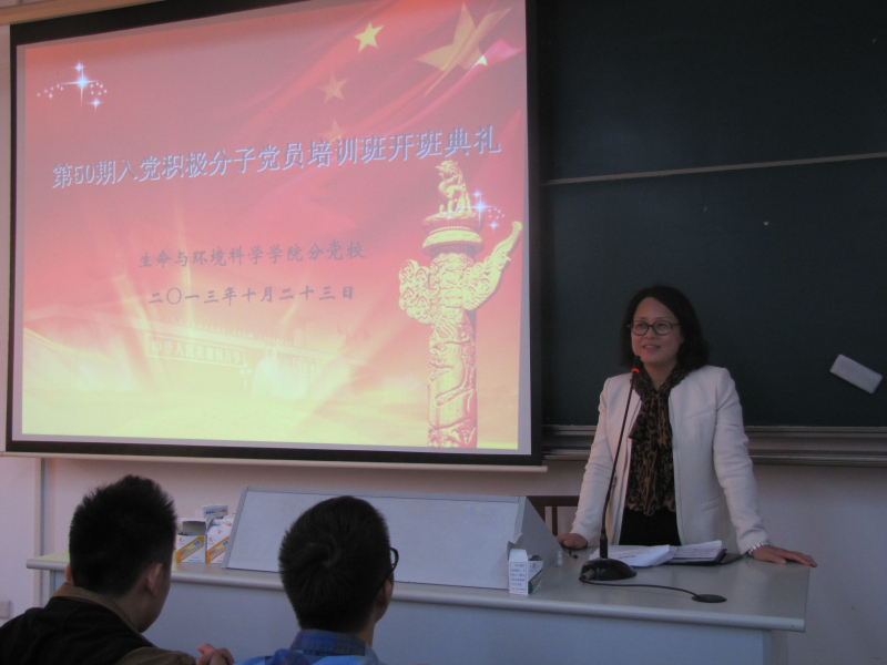 为使广大学生入党积极分子了解无产阶级思想,明确共产主义纲领,把握先进文化的前进方向, 10月23日13:30,生命与环境科学院分党校在B楼107室隆重举行第五十期入党积极分子党课培训开班典礼,并在102室开展党课培训第一讲。老王论坛 党委书记周春儿出席本次开班典礼,党建组织委员倪雅主持开班典礼。