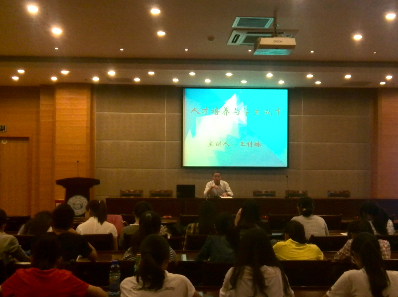 王利琳副校长的精彩讲座,极大的鼓舞了同学们,也在一定程度上改善了学风建设。作为新一代大学生,要把知识转化为智慧,把知识内化为人文精神。加强人生锻炼与道德修养,为理想而不懈努力。