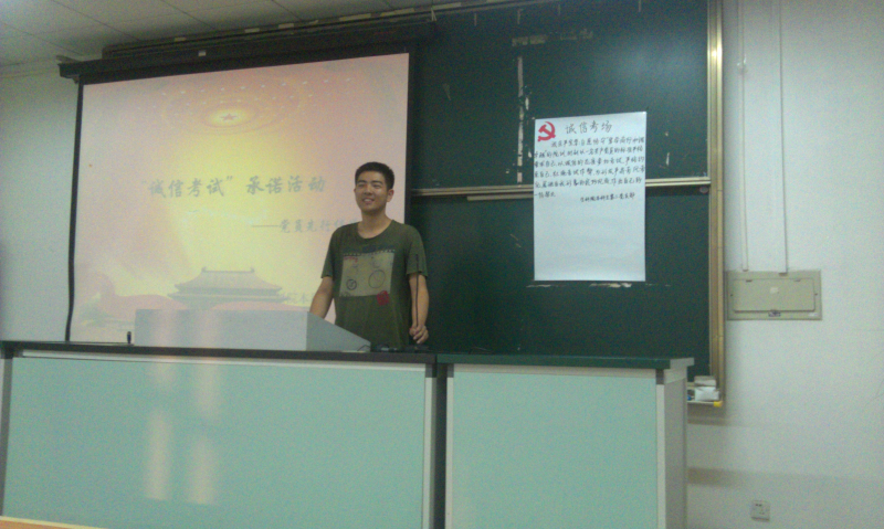 最后,孙扬指出我们要充分发挥党员的先锋模范作用,严格要求自己,认真对待考试,在考试中取得优异的成绩!然后,由各预备党员和入党积极分子签名承诺。