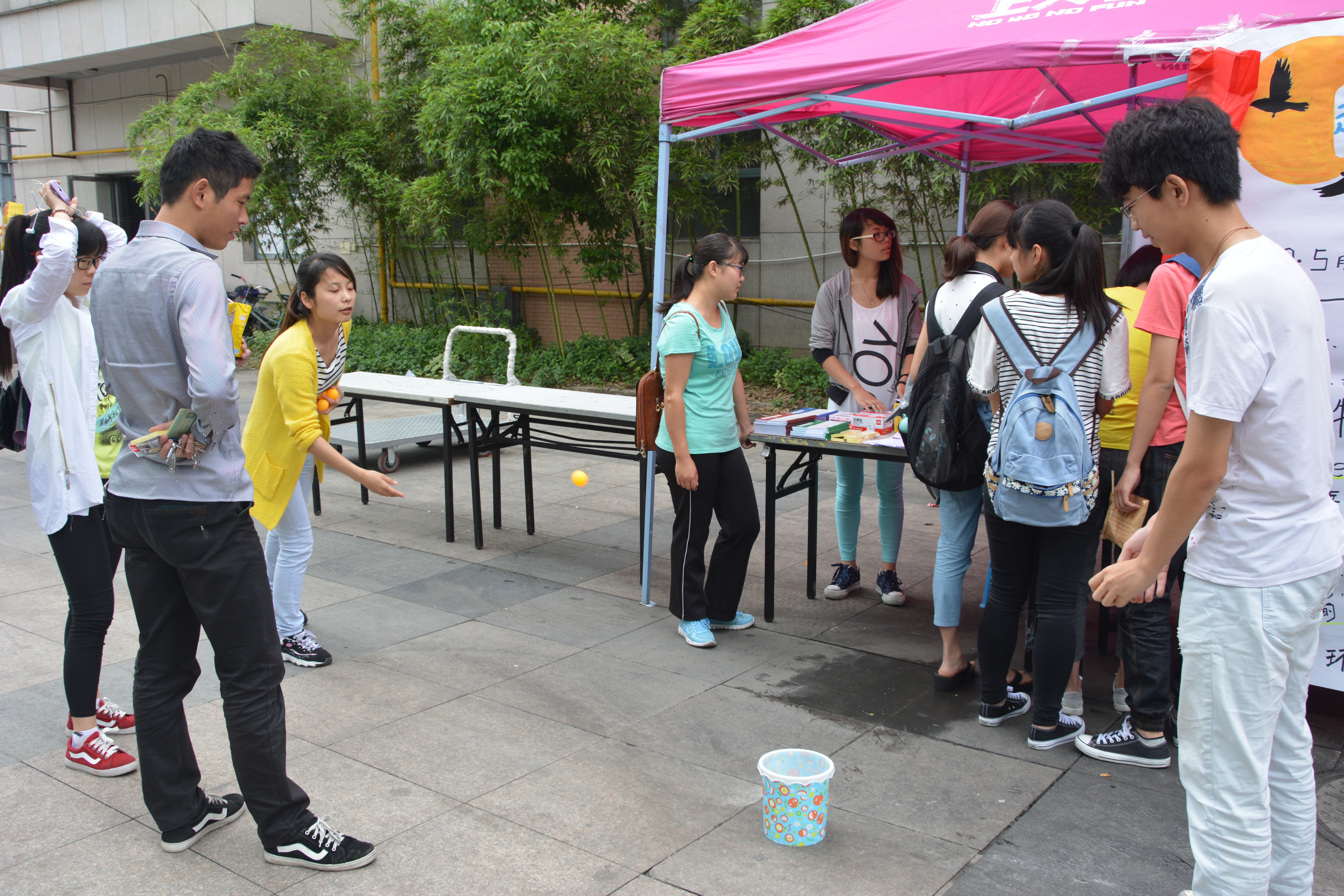 本次巡展的活动可谓精彩纷呈,现场人潮涌动,热闹非凡。野百合艺术团的“帽子涂鸦”和“T-shirt涂鸦”给同学们提供了一个发散思维,展现创意的平台,同学们用颜料和画笔在空白的帽子和短袖上画出各色的图案,将其变成一件件精美的艺术品。“绿之翼”环保协会的“让毽子飞”和“who is the colorful-wolf”也吸引了大家的目光,同学们在运动与答题的完美结合中不知不觉的增长了环保知识。贝斯特乒乓球协会的“趣味乒乓”考验的是大家的眼力,同学们全然不顾炎炎烈日,纷纷跃跃欲试,参与者全神贯注,周围的看客们也都暗暗加油。B.D.服务社的星云瓶制作云集了广泛动手能力极强的杭师学子,一个个小小的星云瓶不仅能体现同学们的色彩搭配技艺,更考验了大家的耐心与细心。“生命源”青年志愿者协会的“老年活动中心”,“浙江科技馆”等志愿者活动与大家心底的志愿者之梦相呼应,同学们都积极参与,希望自己的微薄之力能为他人带来欢乐。除了各社团别出心裁的节目之外,活动现场更有社团成员们的热舞助兴,音乐响起的瞬间便吸引了周围同学的目光,将现场的氛围推向高潮。