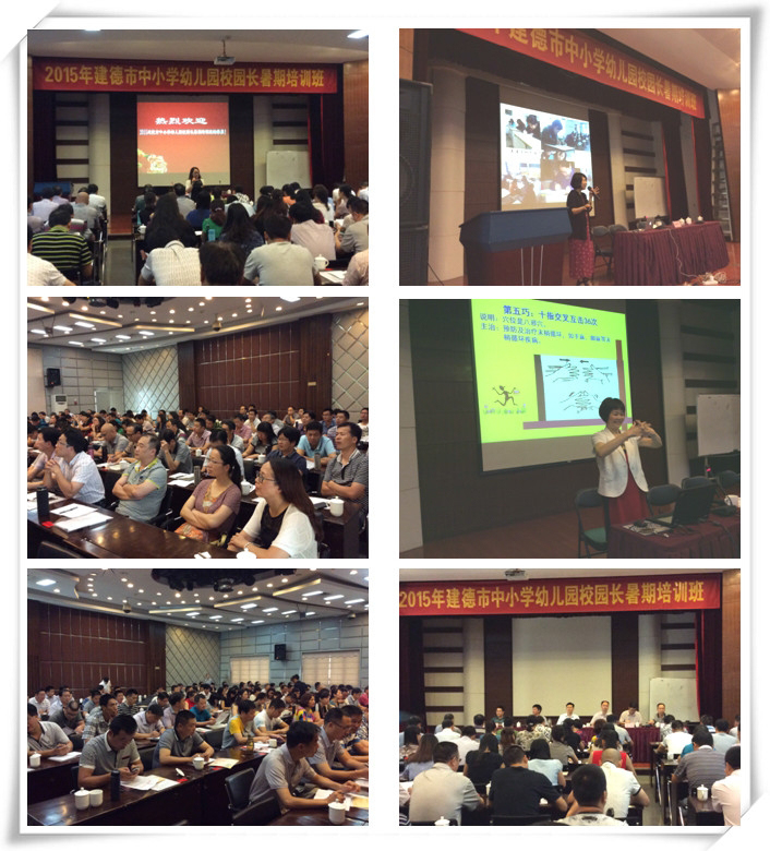 2015年8月11日上午,老王论坛 党委书记周春儿组班的2015年建德市中小学、幼儿园校(园)长暑期培训班在杭州采荷大酒店二楼多媒体报告厅召开,为期2天的培训班按照对方要求进行菜单式的设计并实施完成。图为:学院党委书记在开班典礼上的讲话、专家主题讲座和建德市教育局会议活动。