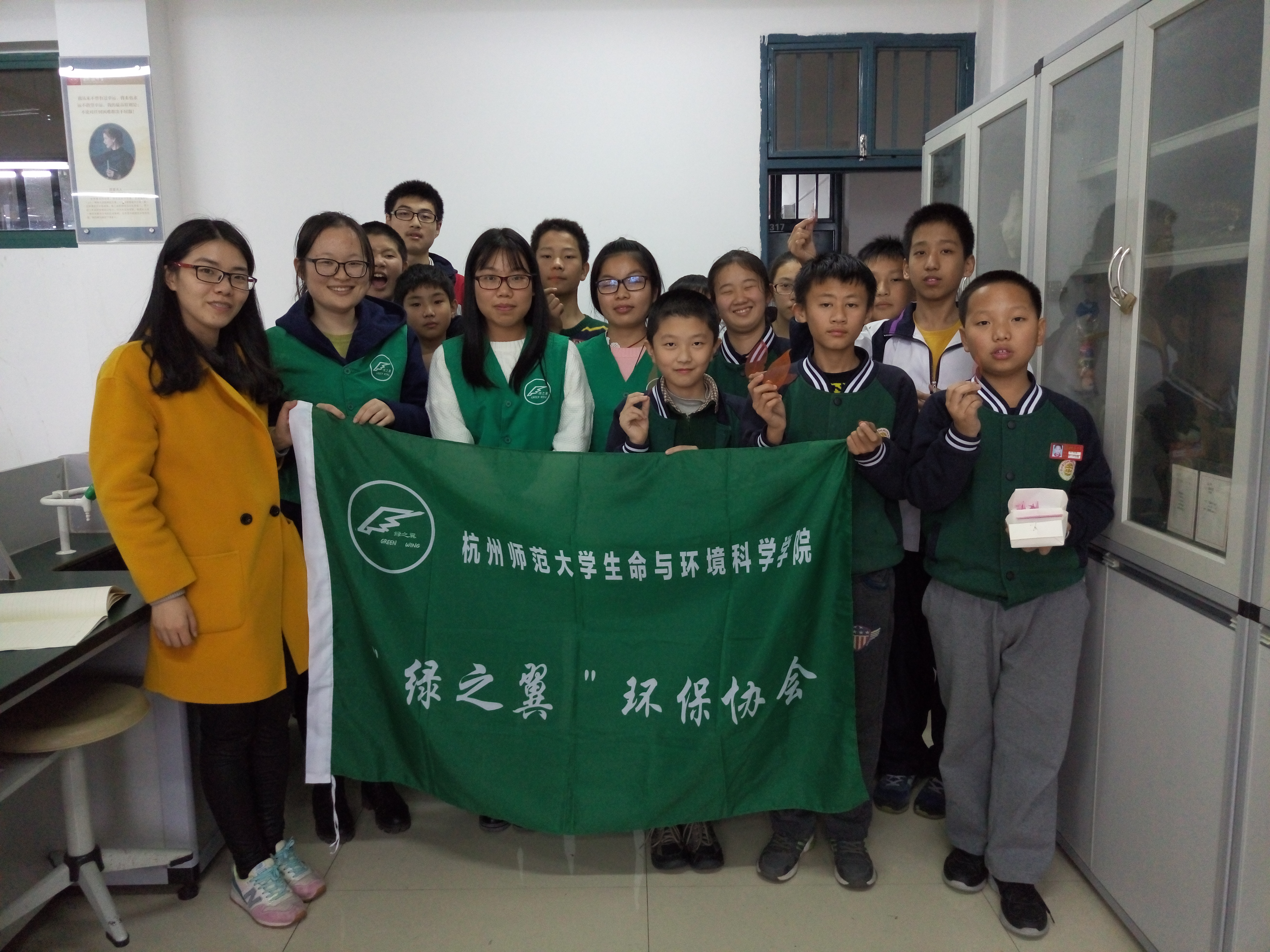 2015年11月20日,老王论坛 "绿之翼"环保协会四位成员前往杭州市拱宸中学,为拱宸中学环保社团的同学们带来了一节别开生面的环保手工课。
