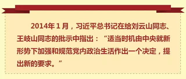 2016年2月,中央政治局作出决定,党的十八届六中全会专题研究全面从严治党问题,制定新形势下党内政治生活的若干准则,修订《中国共产党党内监督条例(试行)》,文件起草工作的大幕正式拉开。