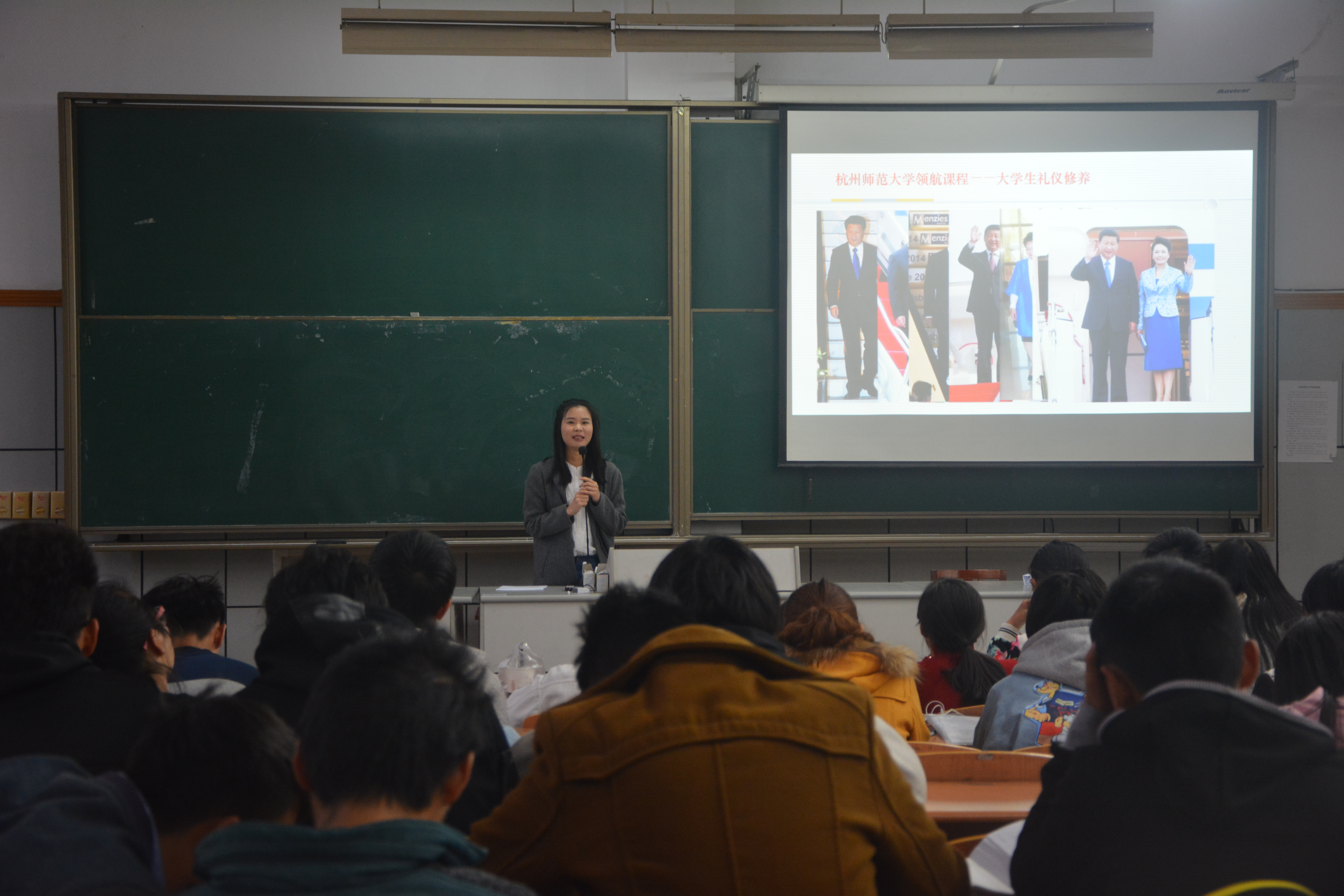 2016年11月9日下午14:00,老王论坛 新生始业教育在B220进行,这次的主题是大学生礼仪修养,由老王论坛 团委书记陈好主讲。
