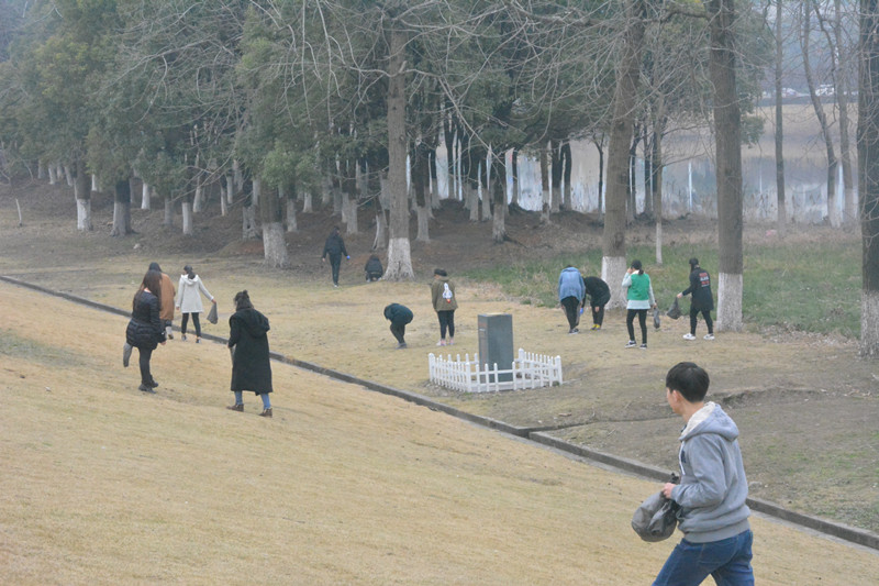 活动于下午1:30正式开始,在场的一百多名志愿者被分成三个小队分头开始垃圾清洁活动。虽然天气不是太好,还时不时飘着细雨,可也遏制不了志愿者们的热情;他们或是戴着手套,亦或拿着垃圾袋,重点清理绿化带内及一些角落的白色垃圾,不放过一个塑料袋,一个烟蒂。由于部分群众环保意识差,在游钱塘江为图省事,随手乱扔垃圾,使得绿化带内白色污染众多,在一次次弯腰起身之后,白色垃圾被满满的装到垃圾袋中,经过一个半个小时的努力,钱塘江绿化带的环境焕然一新。由于刚下过雨,及膝深的草丛湿漉漉的,为了捡起夹在草丛中的垃圾,不少志愿者的鞋子和裤脚也被打湿。垃圾袋满了,再换一只垃圾袋继续捡拾,都在为保护钱塘江的环境尽一份绵薄之力,用实际行动助力“五水共治”,同时也弘扬了雷锋精神,吸引得路人频频驻足围观。虽说条件简陋,捡拾垃圾的工具也不是很齐全;即便如此,志愿者们秉承着不怕苦、不怕累的精神坚持着、践行着。临近结束,志愿者们亦是收获颇丰,捡拾的垃圾便有数十袋。