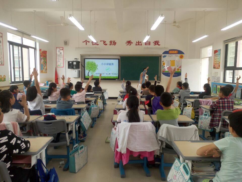 烈日炎炎,利用学生们中午的课间活动时间,"绿之翼"环保协会携手志愿者给学生们开展了一节生动的五水共治课程。讲师们向小朋友们介绍了五水共治的含义及内容。最初,讲师用动漫视频帮助学生了解五水共治的详细情况,接着用手指记忆法帮助学生更好地记住五水共治中的五水:从大拇指到小拇指分别代表了治污水、防洪水、排涝水、保供水、抓节水。当讲到五水共治项目治理措施时,讲师用简洁易懂的语言以及举例来帮助学生更好地理解其含义。这节课讲师除了向学生们介绍杭州的五水共治,还介绍了杭州一些周边城市的五水共治的措施及成果,加深了小朋友们对五水共治的了解,使得小朋友们更好地了解各地区五水共治的差别及意义。