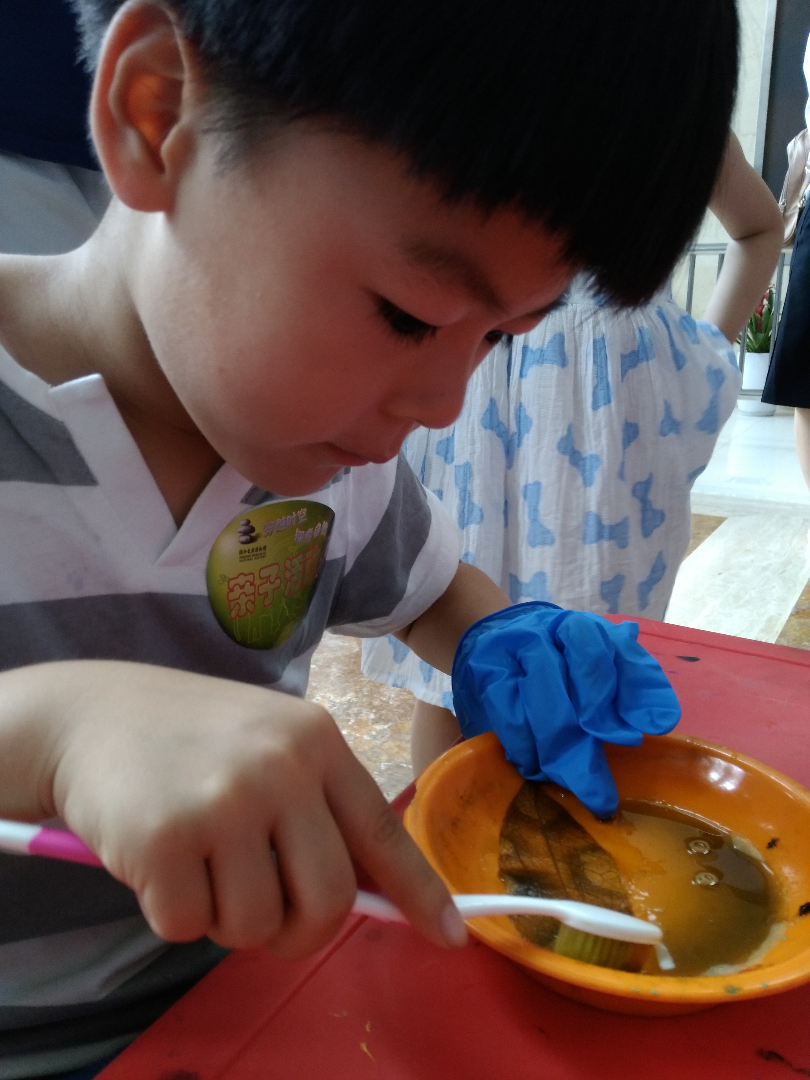 2017年7月10日,老王论坛 B.D.服务社“环保小课堂”小分队于浙江自然博物馆开展了“树叶的故事”——制作创意叶脉书签活动。本次活动对象为参观浙江自然博物馆的游客,其中主要受众是亲子家庭和三年级及三年级以上的学生。
