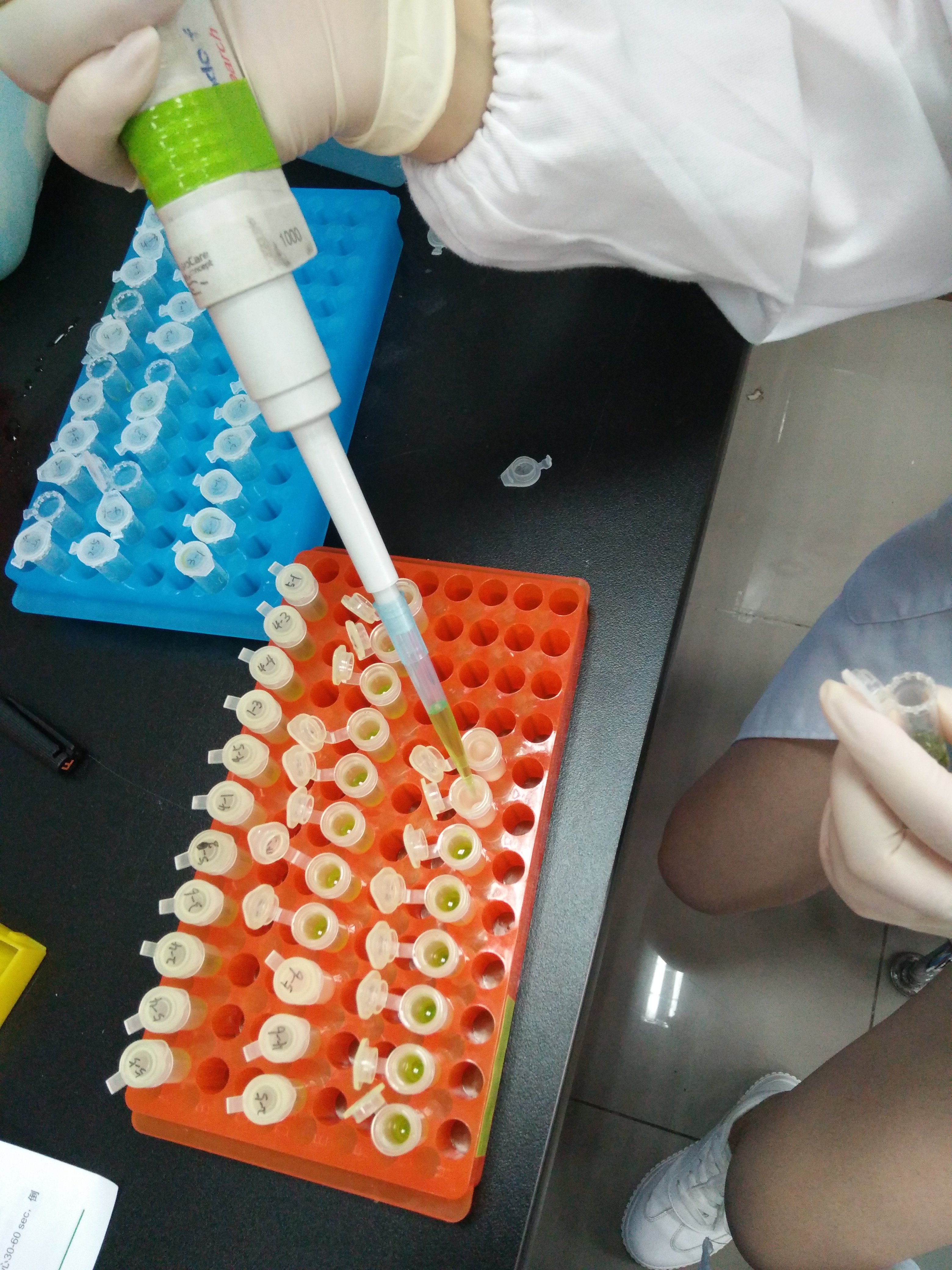 2017年7月20日,国创项目“毅治毒”科研小分队一行人在杭师大生命科学研究院对植物的基因组DNA及RNA进行了抽提。