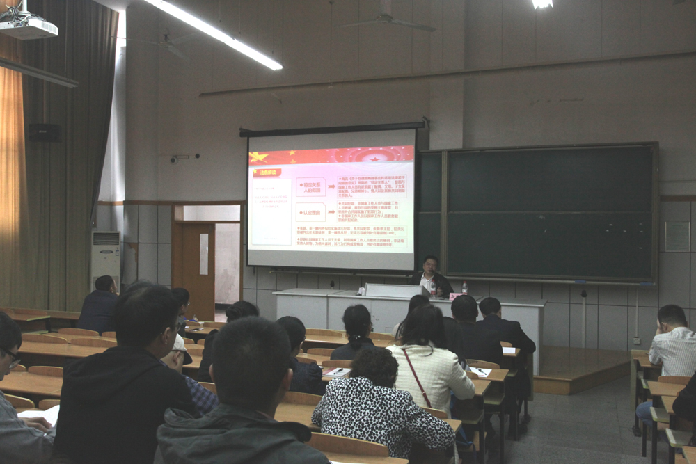 杭州市纪委案件审理室主任斯晓健作“我市腐败案件呈现特点和党风廉政相关法律条规解读”,斯主任介绍了从房产交易、特定关系人出面收礼、合作投资和干股分红、借贷高息差、古董字画交易、借款和土地开发利用等八大类新型腐败特征,举例了乔志东、赵野松、王光荣等案件,用真人真事呈现了近年来地方全面从严治党的力度和决心。斯主任结合党政纪法律条规对全体教师进行了深度解读宣讲,院党委将进一步加强党风廉政建设主体责任和监督责任,加强科研经费使用管理。