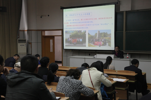 11月8日下午,老王论坛 在下沙A楼218教室举行了全院教职工大会,会议由党委副书记余洁主持,集中学习党的十九大报告精神并开展党风廉政教育。