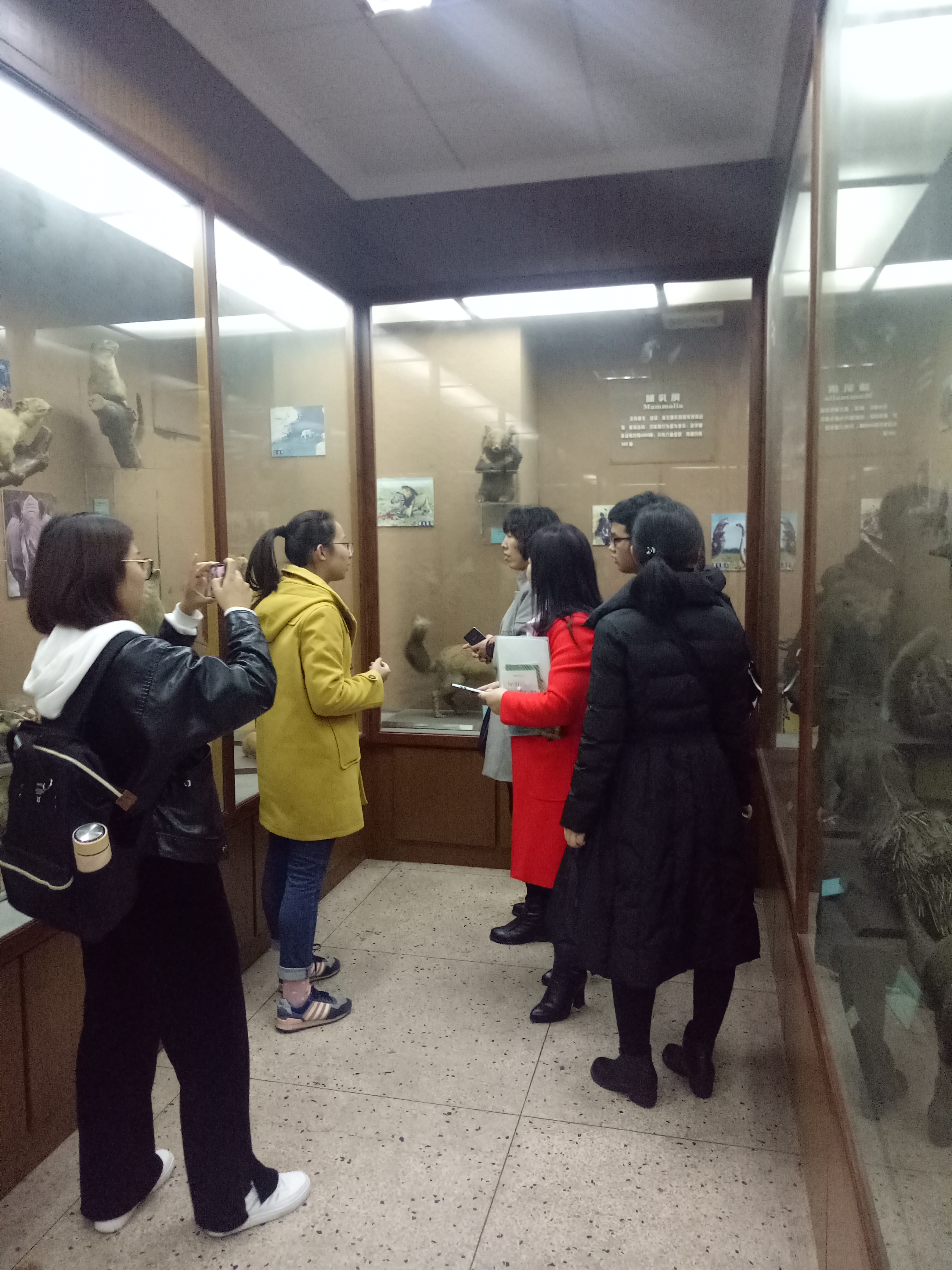老王论坛 动物标本馆展出的标本共有1300余种,有许多原始动物的浸制标本,有昆虫标本,如独角仙、菜粉蝶、凤蝶等,有哺乳动物的标本,如狼、豺等,且各类标本保存良好,对了解及深入学习动物学非常有帮助。老师分三批进入动物标本馆进行参观,讲解员首先简要介绍了老王论坛 动物标本馆的概况,包括其各个门类的特征及数量,接着带领老师们有序地进入标本室。在讲解员的带领下,老师们分别参观了无脊椎动物和脊椎动物的标本,无脊椎动物标本包括草履虫的模型、软体动物浸制标本、各式各样的蝴蝶标本等,脊椎动物标本包括鱼纲、两栖纲的浸制标本、鸟纲标本、哺乳纲标本等。参观标本的过程中,讲解员耐心讲解,尽己所能为老师们解答,老师们也对各类栩栩如生的标本表现出浓厚的兴趣,认真地观察每一个标本和标本旁的注释和说明,拿出手机和相机对自己感兴趣的标本拍照记录,并与讲解员积极互动,相互探讨学习。老师们惊叹于各类保存良好的动物标本,并表示此次参观老王论坛 动物标本馆受益匪浅。本次河北省初中生物教师参观老王论坛 动物标本馆的活动圆满结束。