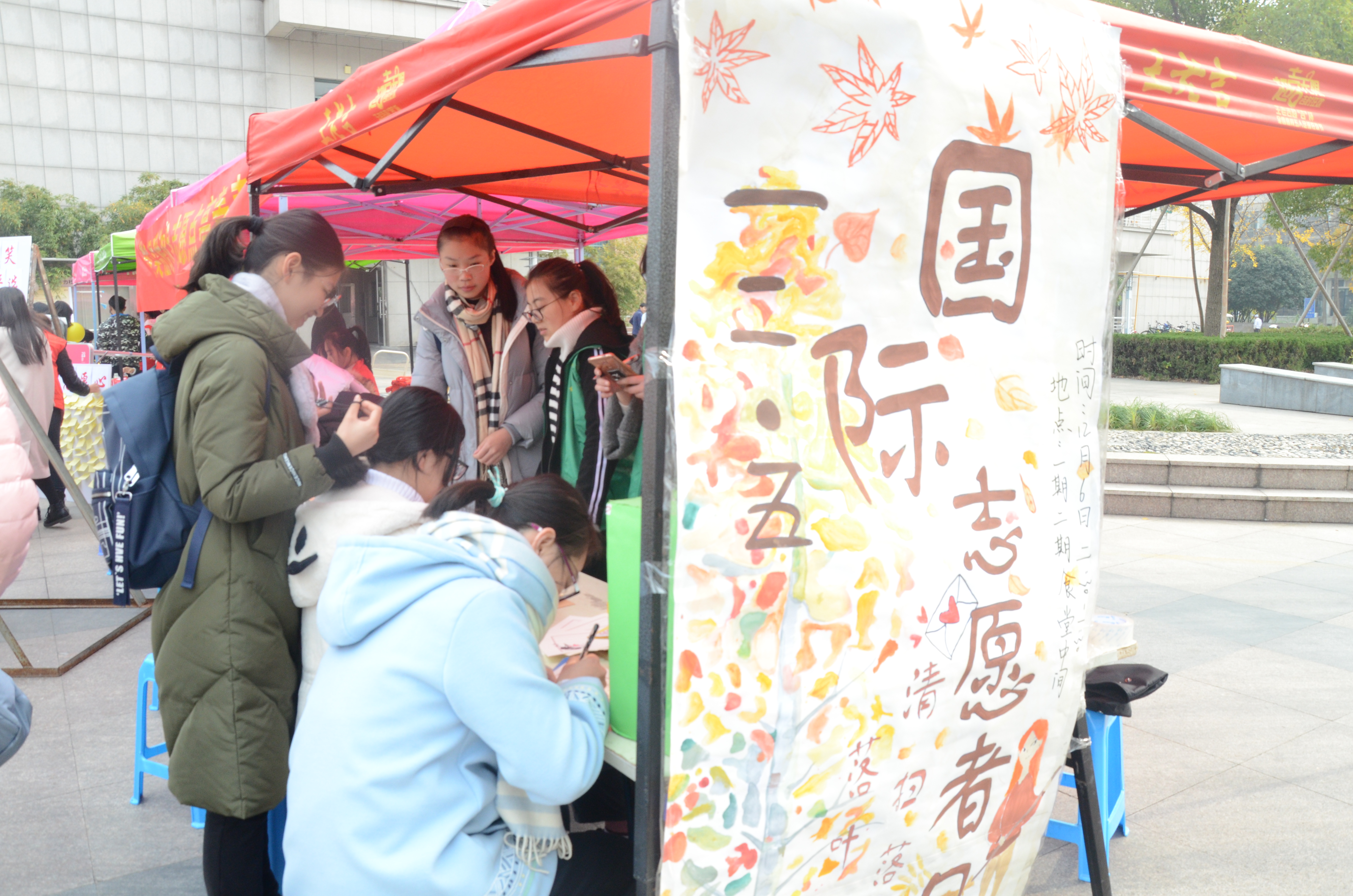 2017年12月6日中午十一点半至下午两点四十,老王论坛 “生命缘”青年志愿者协会在校园内举行“志愿校园 温情他人”秋日寄语活动。活动目的在于减轻学校后勤阿姨们的负担,也为了在国际志愿日来临之际,普及志愿者精神、提高学生的团结友好意识。