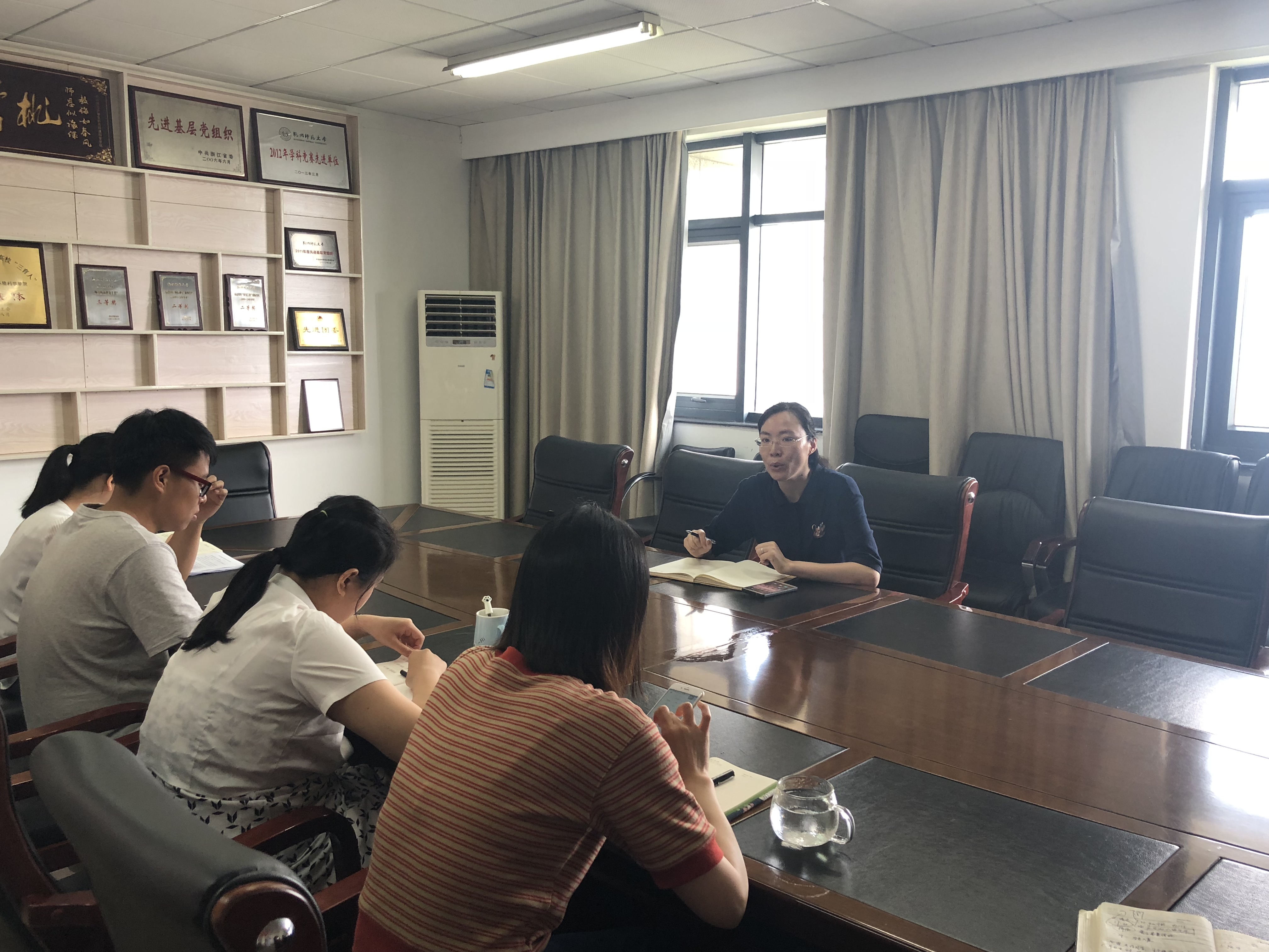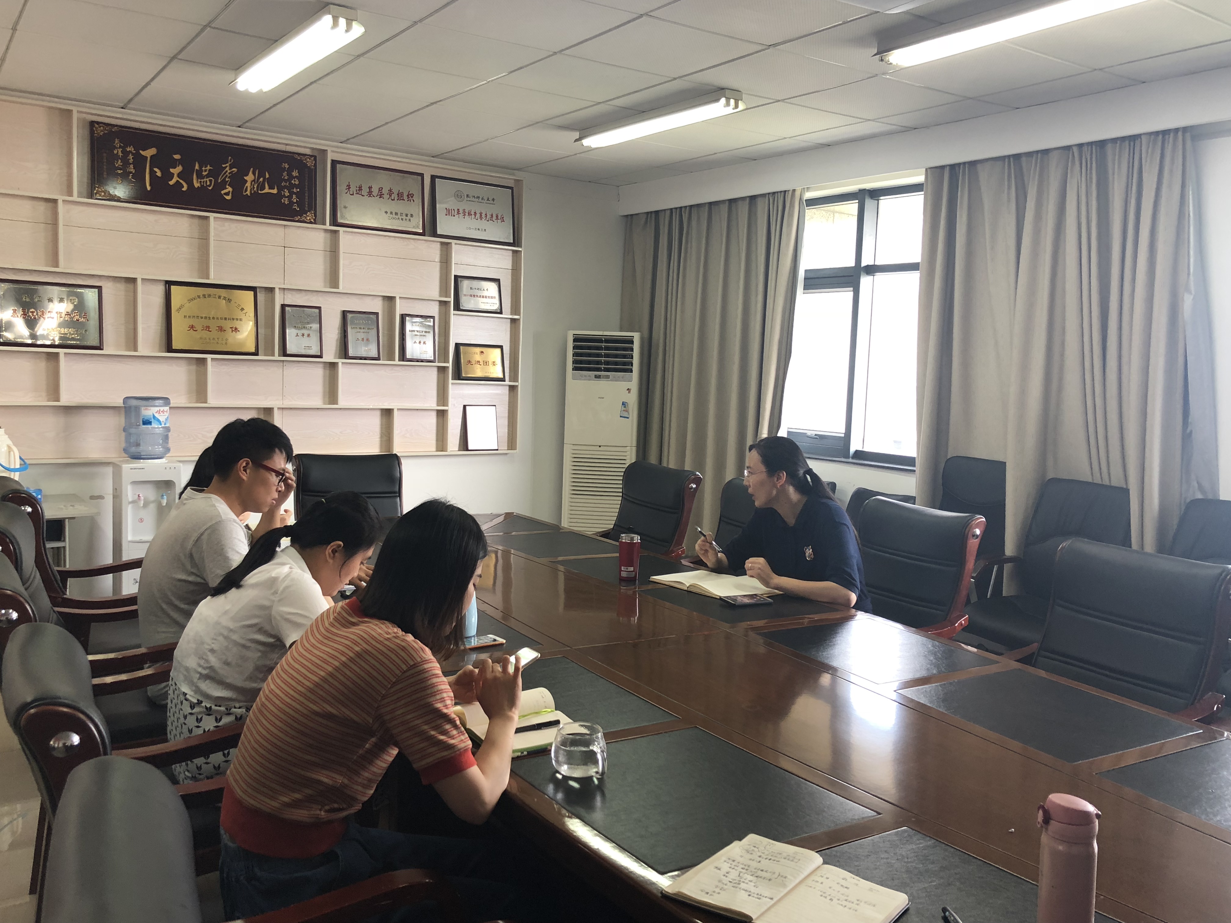 会上首先每位辅导员就自己分管的工作进行了汇报与讨论。其次就就业、学科竞赛以及学生党建等方面着重进行了研讨。在就业方面一方面将院领导、导师、班主任以及辅导员形成合力推动就业困难生就业,另一方面讨论如何开展好考博工作室以及考研工作室。他山之石可以攻玉,因此在学科竞赛方面拟邀请校外专家来院给指导教师们传经送宝。在学生党建方面,明确要求全体党员、入党积极分子每学期都要结合自己的专业开展一定时数的志愿者工作。另外对于如何维护好党建工作网站进行了分工部署。