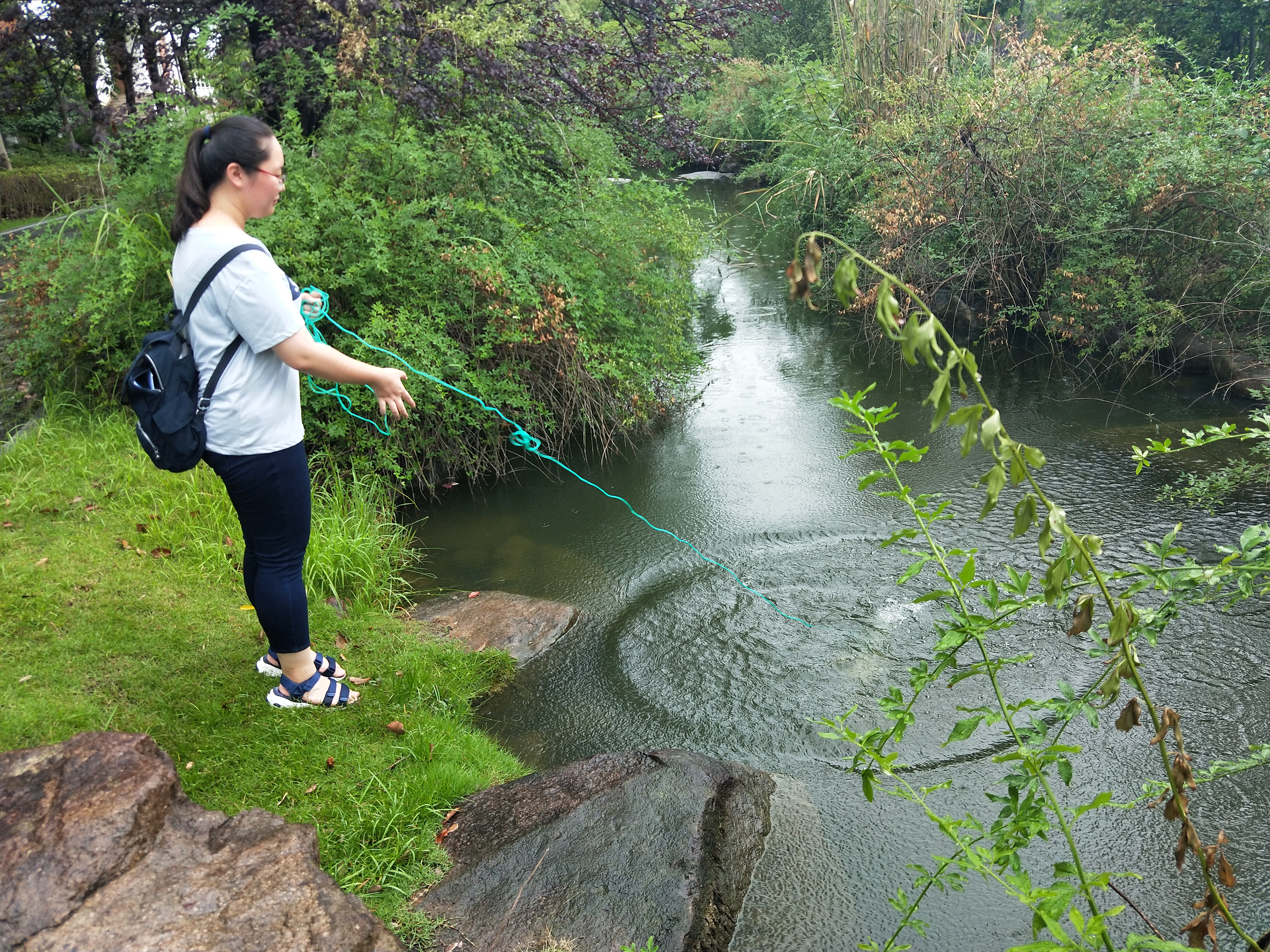 此次社会实践活动旨在组织以大学生为主的年轻力量在环保建设中发挥更大的作用,对各大学河道水质的理化性质检测,并同时开展多方面宣传活动。进到校区后,校区相似的布置格局给成员们的取水行动带来了便利。在找到学校中的湖泊或小溪后,将取水器扔至距离岸边较远的地方,取较深的水样。因为当天的阴雨天气,浅水区的水质受到一定的影响,并不适宜作为代表检测对象,所以深层水才是目标。在采集的过程中,小组成员们遇到了不同的人群,好奇的小朋友,路过的同学,保安大叔等,成员们向他们讲解了此次活动的目的以及意义,同时做了关于环境的一些调查问卷。不难发现,不论是小朋友或是年过半百的大叔,每个人都明白环境保护的重要性,也会在平日的生活中力所能及地做一些小事。在取好水样之后,实践小组便立即返回学校对水样进行了检测,主要是化学需氧量,总氮,总磷等一些基本指标,并做好了数据的记录分析工作。