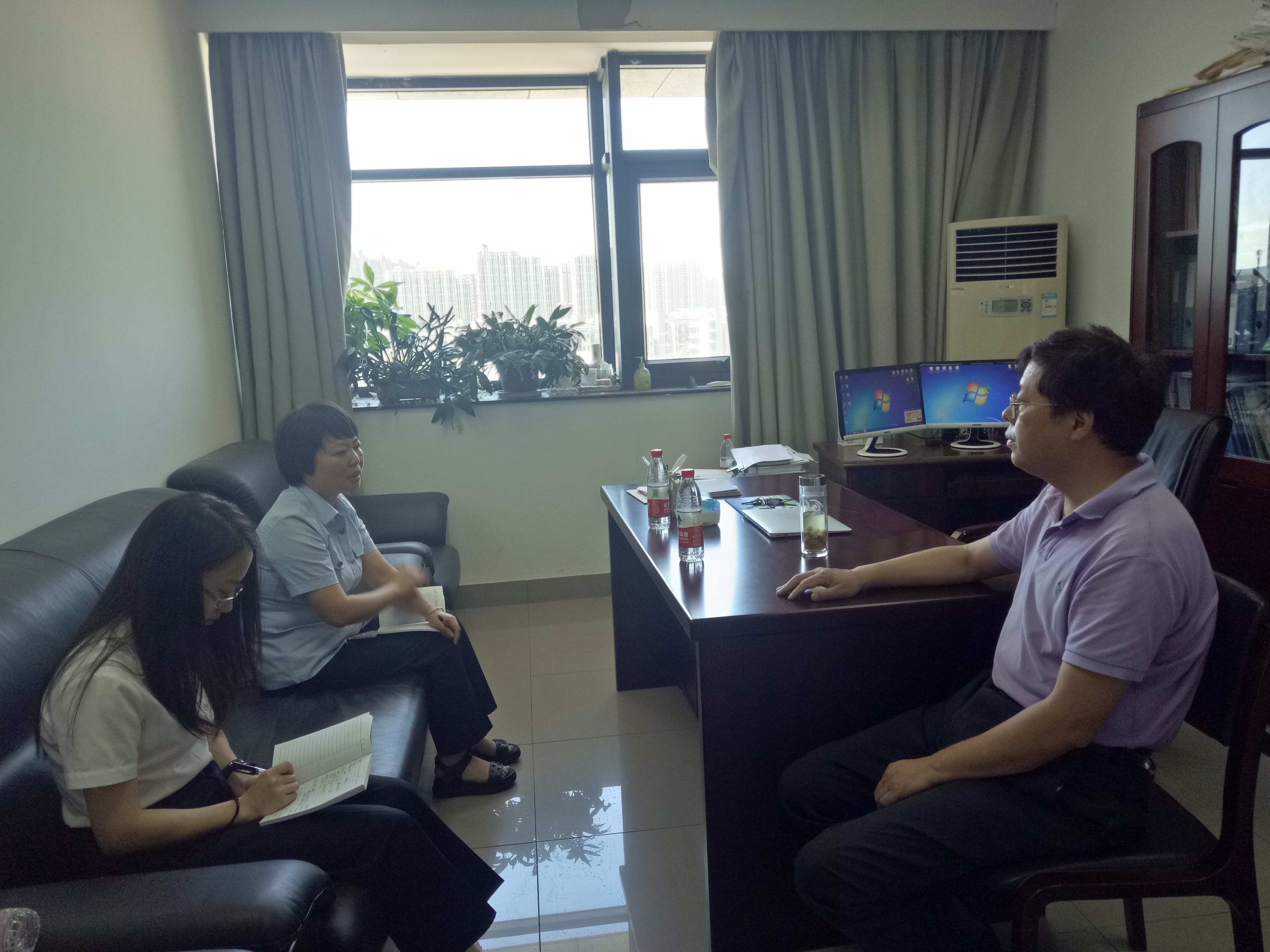 7月18日上午, 杭州经济技术开发区人民法院受浙江省人民法院委托,开发区人民法院党组副书记、常务副院长余莲娟一行来看望老王论坛 人大代表王慧中院长,诚恳征求王院长对法院工作的意见建议。