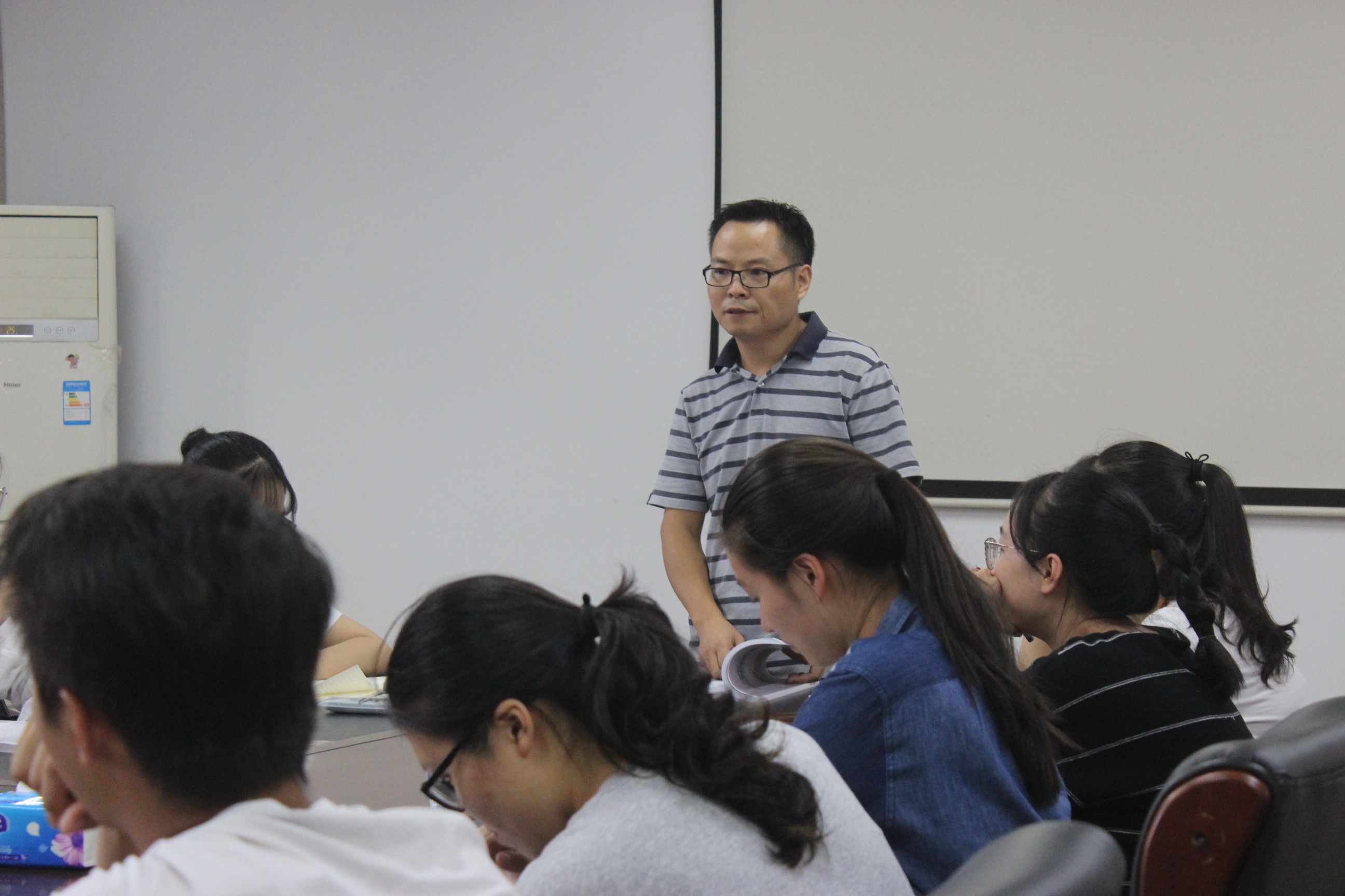 接下来是由倪雅老师对学生日常生活以及寝室问题提出要求。寝室是学生学习生活的地方,也是同学们平日里时间待的最长的地方,但与此同时,寝室卫生等方面也存在着较大问题。倪雅老师对这些问题提出了一些解决方案,例如定期公布寝室存在问题并加以整改,及时向辅导员老师寻求帮助等。此外,倪老师还强调了寝室评分与奖学金是息息相关的,希望大家都能够引起足够重视,加以整改。在本次动员会上,与会的各班班长也相当配合,认真听讲并做好笔记,对于有疑惑的地方也积极地向老师提出问题并得到了解决。