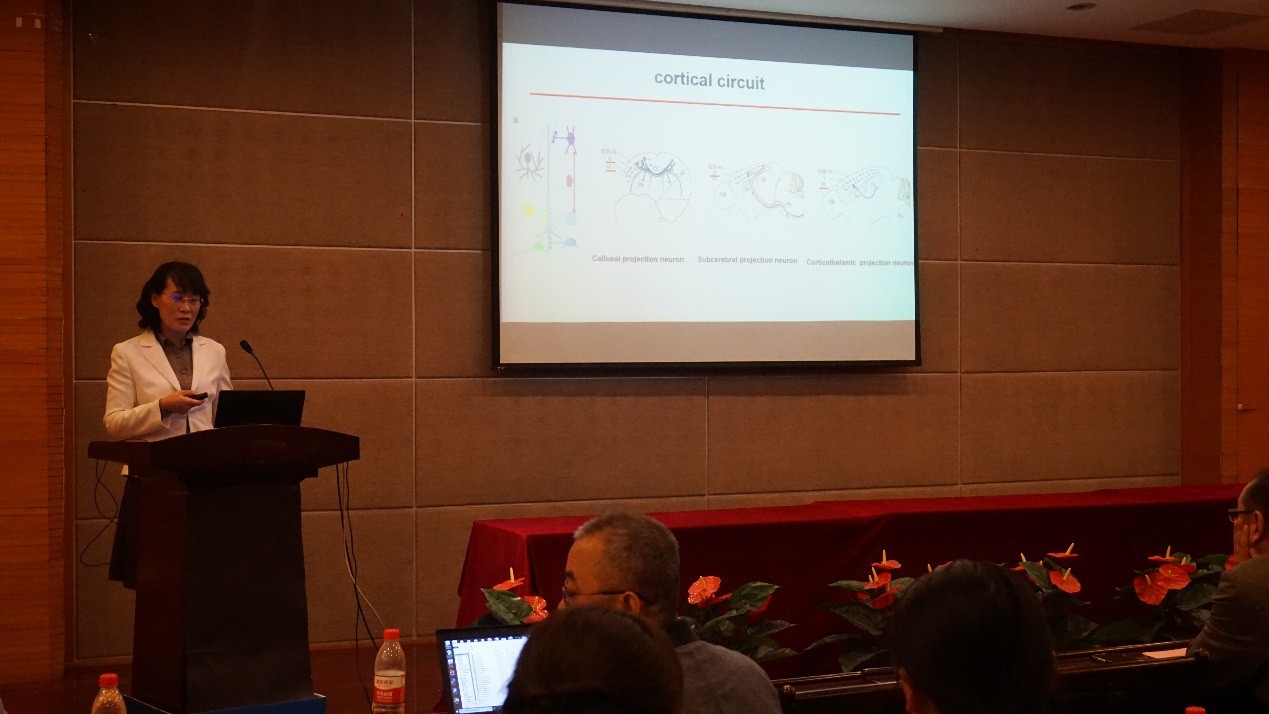 上半场,东南大学赵春杰教授作了题为“The Specification of cortical neurons”学术报告,讲述了转录因子Foxg1和蛋白激酶PDK1对大脑中间神经元和皮层神经元发育的调控。复旦大学杨振纲教授作为题为“Gene regulatory network underlying olfactory bulb interneuron development” 学术报告,对嗅球和大脑纹状体中间神经元发育的基因调控进行了详细解读,介绍了Sp8/Sp9的系统调控作用在嗅球和纹状体中间神经元发育中起到的关键性调控作用,并对Sp8/Sp9的上下游调控基因进行了有效的探索。这两项汇报都提到了其研究内容与HTT舞蹈症(亨廷顿氏舞蹈症)等中枢神经系统神经元相关的疾病的关系。
