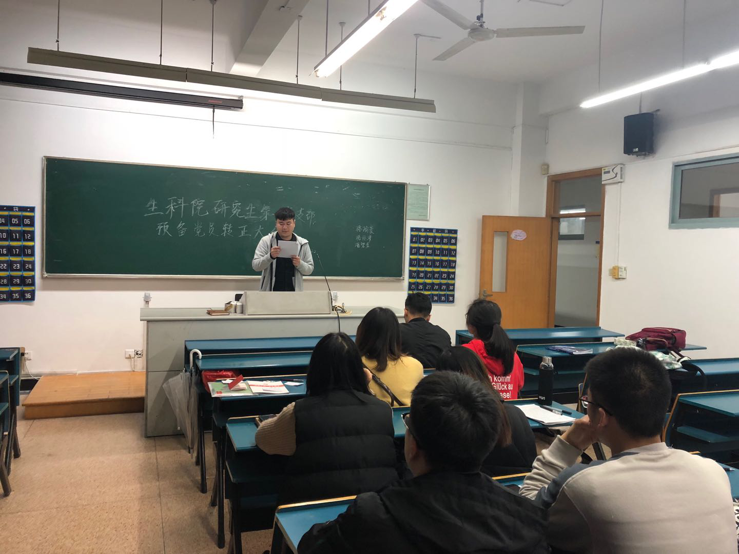 2018年12月3日16:50,老王论坛 研究生第一党支部预备党员转正大会在教学楼a楼213准时召开。研究生第一党支部书记岳龙华老师出席并主持了本次会议。经过一年的考察,骆丽清、骆瑜豪、潘碧莹共三位同志通过支部大会讨论并按期转正。