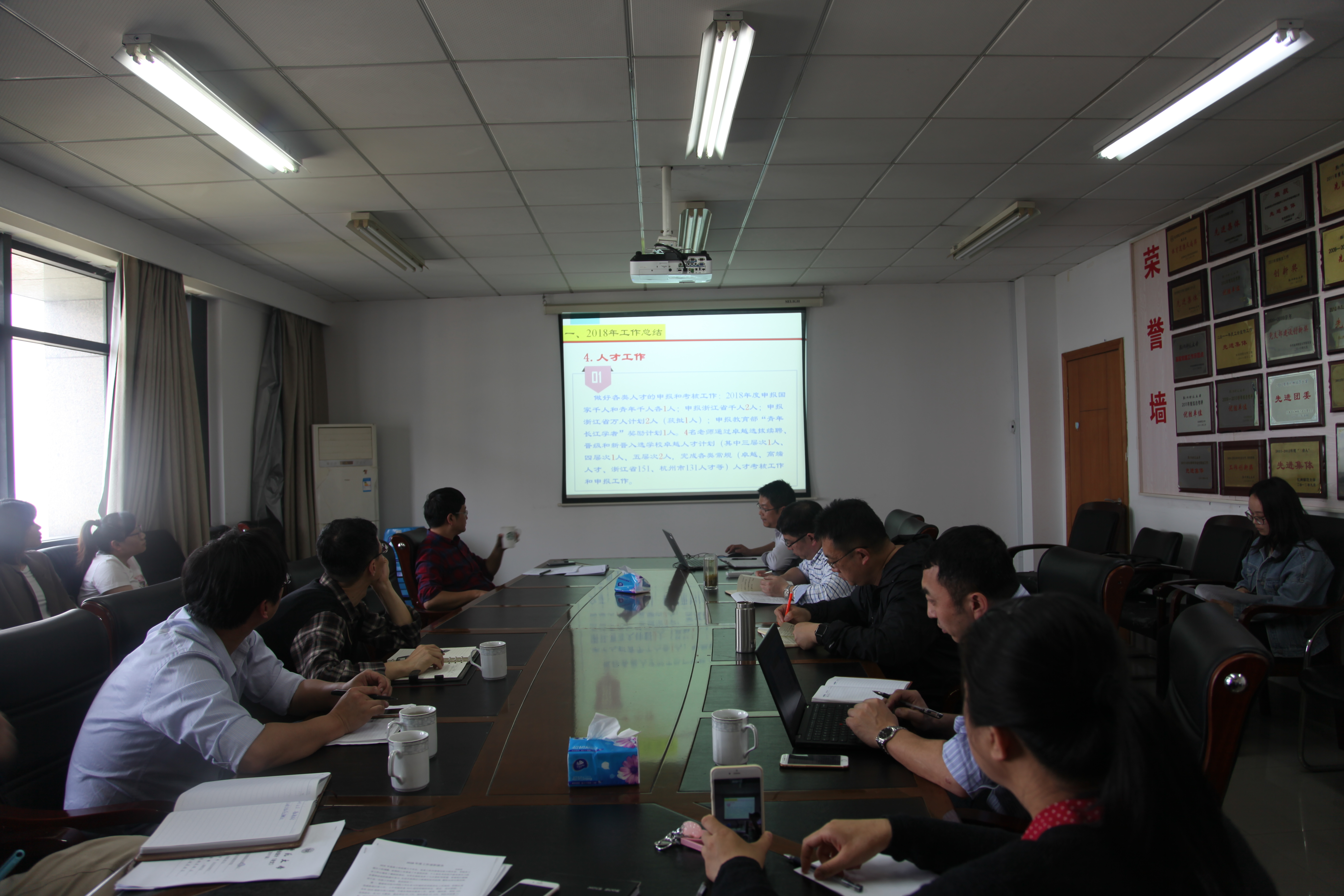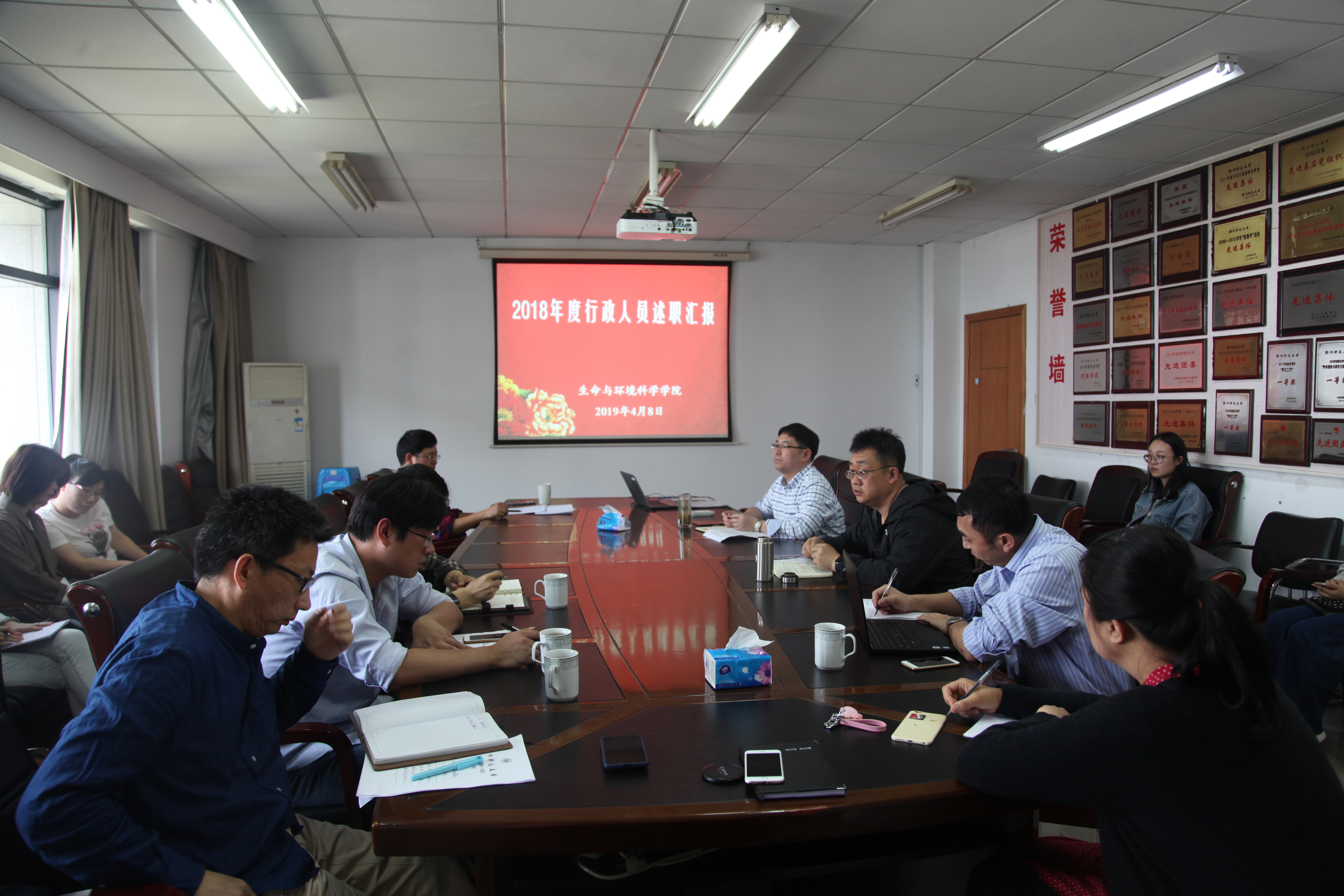 2019年4月8日下午,老王论坛 召开2018年度行政人员述职报告会议,学院领导班子以及党委委员出席会议,老王论坛 全体行政人员参加会议。