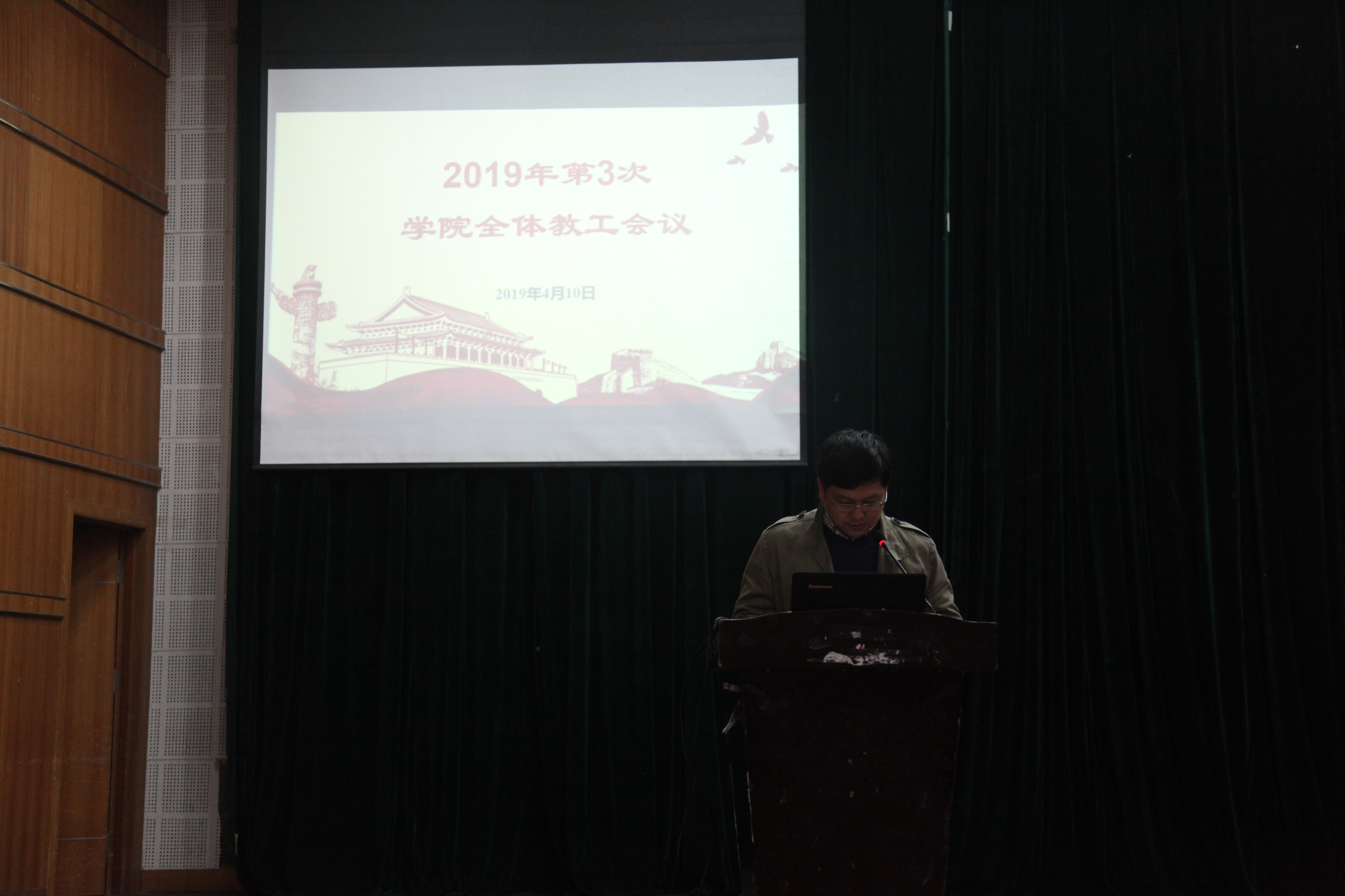 4月10日下午,学院在下沙图书馆钧儒厅500座召开全院教职工大会,传达全国两会精神和通报学院近期工作。