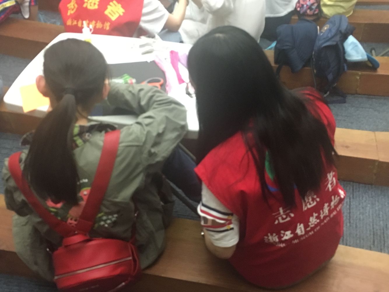 首先,团队的得力干将去邀请可爱的小朋友来参加活动。尽管是在端午的后一天,来的人员还是很多,而游客似乎都是有目的来博物馆。所以刚开始时,人员招募不是很顺利。但经过小分队的不断努力,最后有很多的小朋友和家长参与到活动中。随着人群的涌进,时间逐渐过去。活动正式开始。