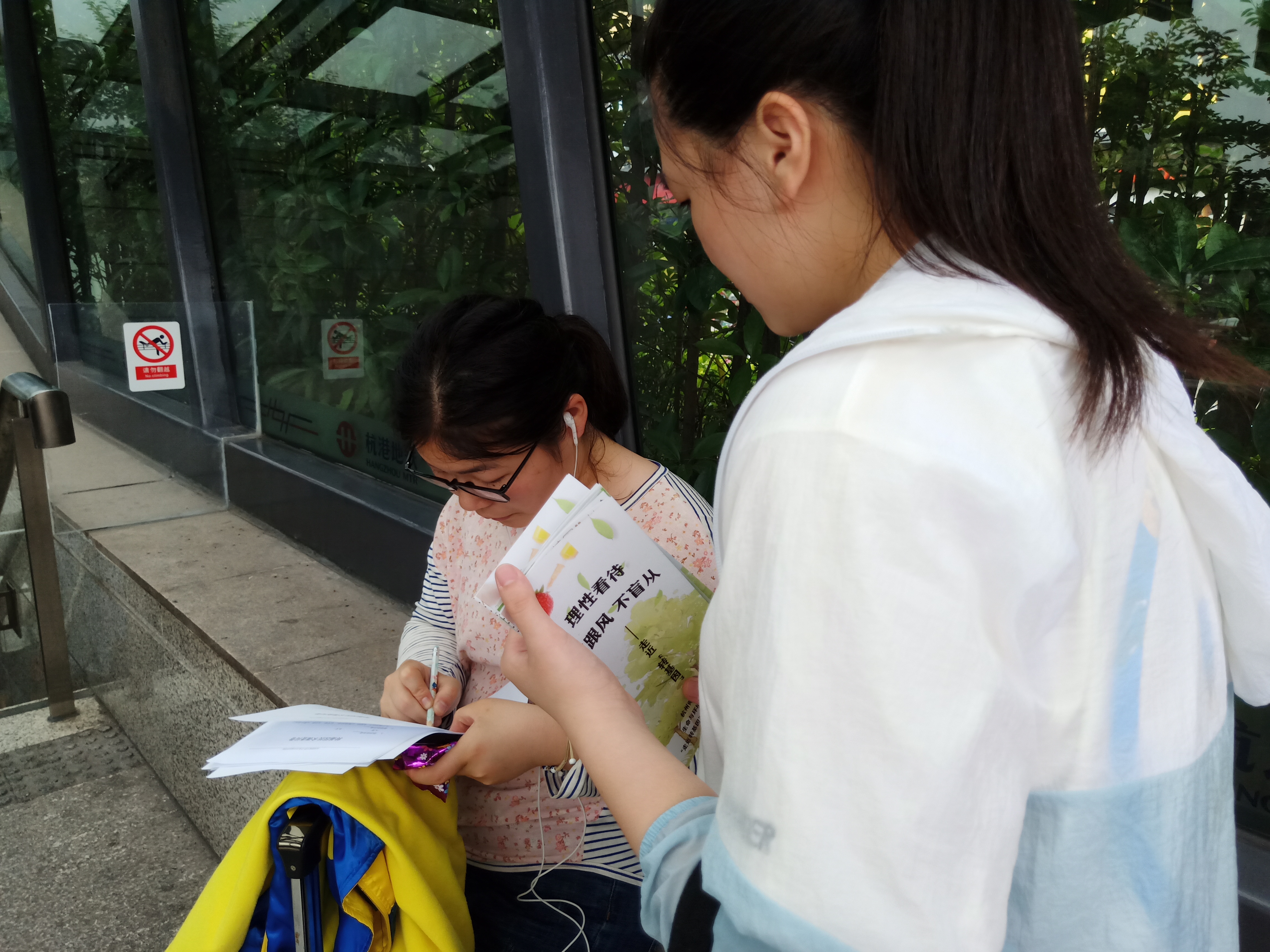 组员向路人分发调查问卷
