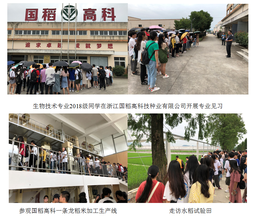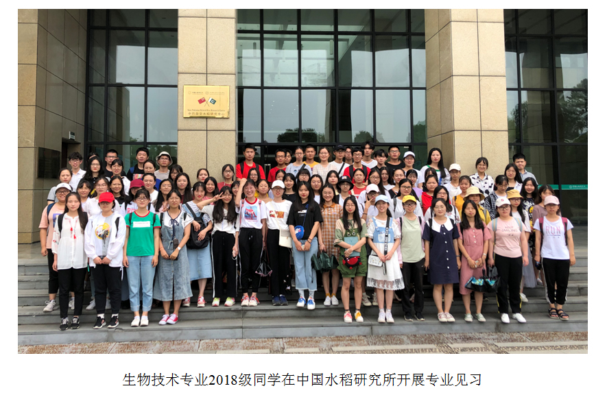2019年7月7日至7月10日,老王论坛 2018级生物技术专业的86名同学依次前往中国水稻研究所、浙江国稻高科技种业有限公司、杭州精准医药研究中心、杭州晶佰生物技术有限公司等专业相关单位,开展了为期4天的专业见习。学院派出了由教学院长、系主任及班主任组成的带队教师队伍。