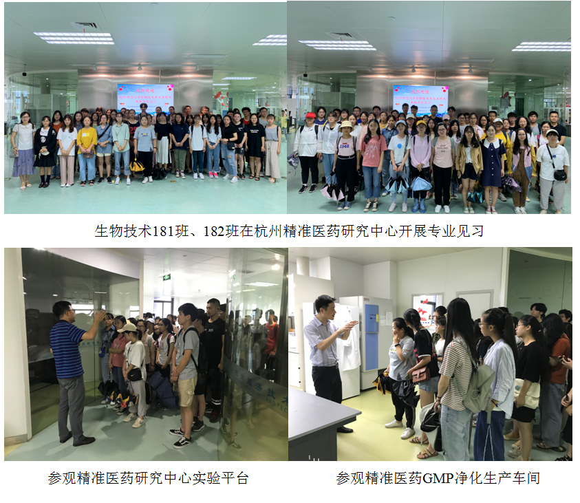 专业见习的第三站是杭州精准医药研究中心。在精准医药,黄华荣老师和华允芬老师首先介绍了公司的主营业务,然后带领同学们参观了研究中心各类先进的仪器设备和数据分析系统,走访了GMP净化生产车间,使同学们了解了生物医药产业的创新发展,以及能为民众提供的各类生物技术服务的类型。