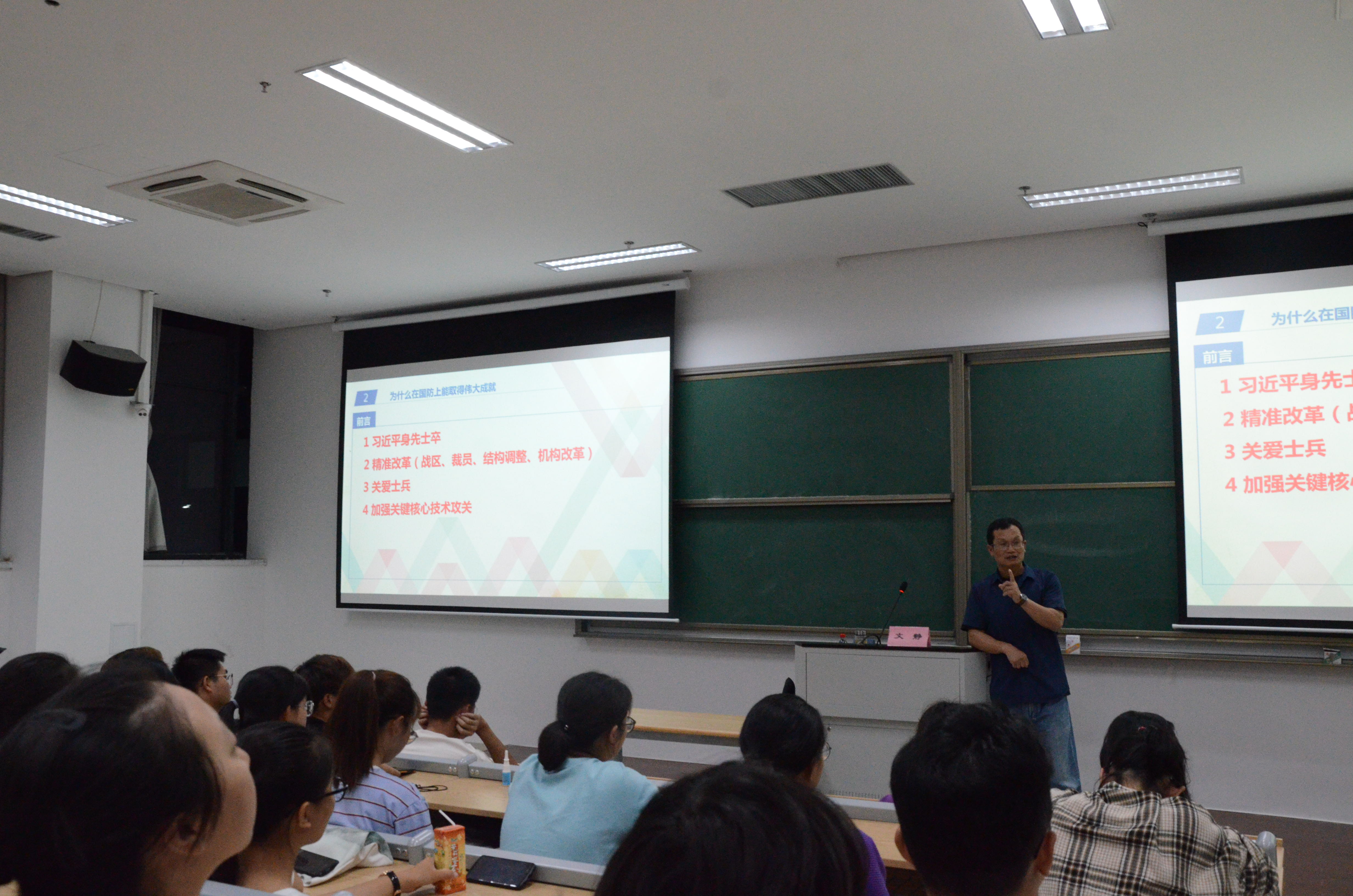 2019年9月17晚18:20,老王论坛 面向全体大一新生于慎园1-202进行新生国防安全知识讲座。本次讲座特别邀请到体育与健康学院的文静老师。文静老师主持了校级精品课程《体育统计学》,并且文静老师是老王论坛 17级所有班级的军事理论和国防教育的授课老师。