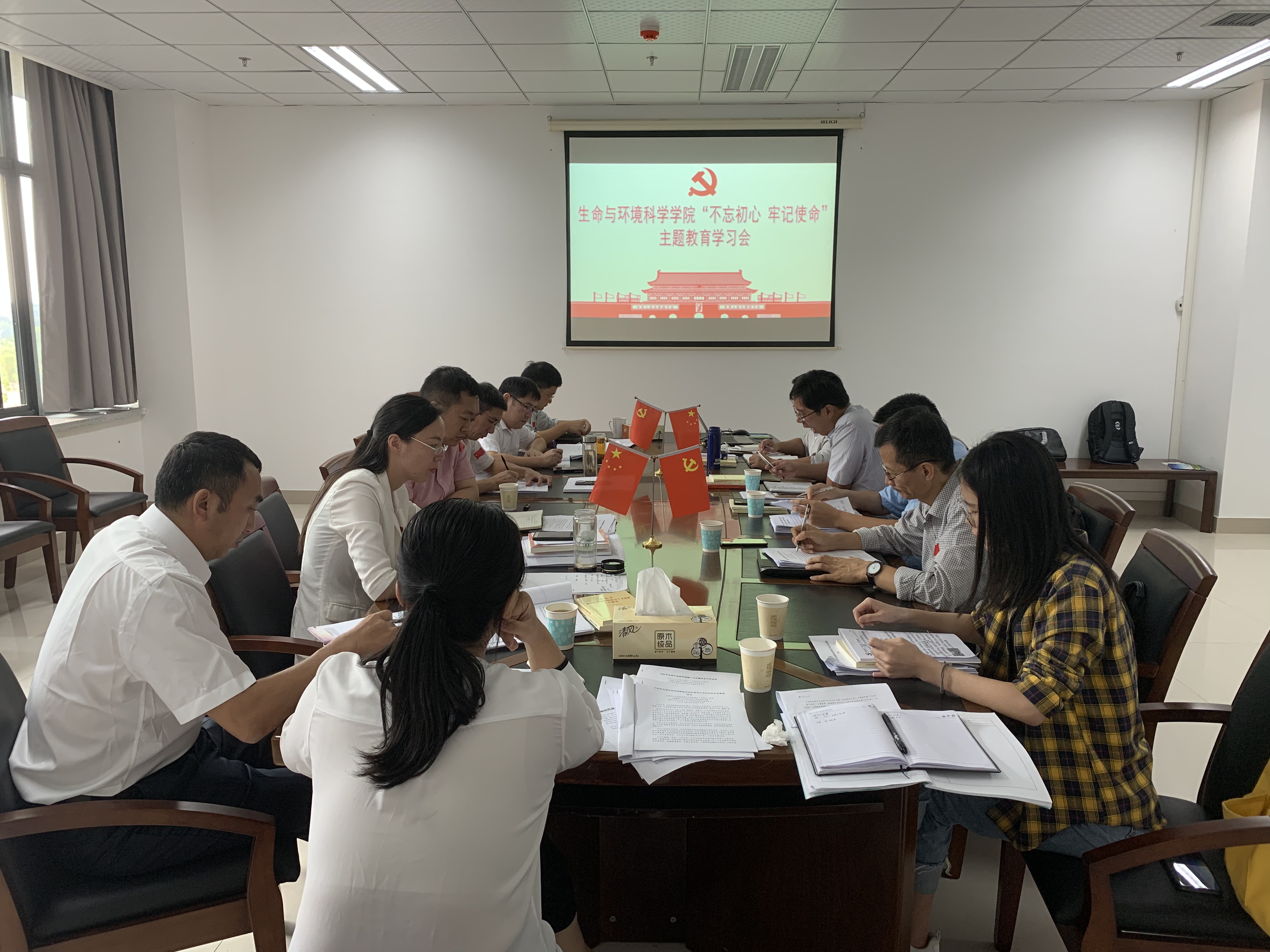 上午,全体成员在慎园15-313集中读原著,学习了《习近平在“不忘初心、牢记使命”主题教育工作会议上的讲话》、《习近平在内蒙古考察并指导开展“不忘初心、牢记使命”主题教育》、《习近平在全国高校思想政治工作会议上发表重要讲话》等重要会议讲话精神。