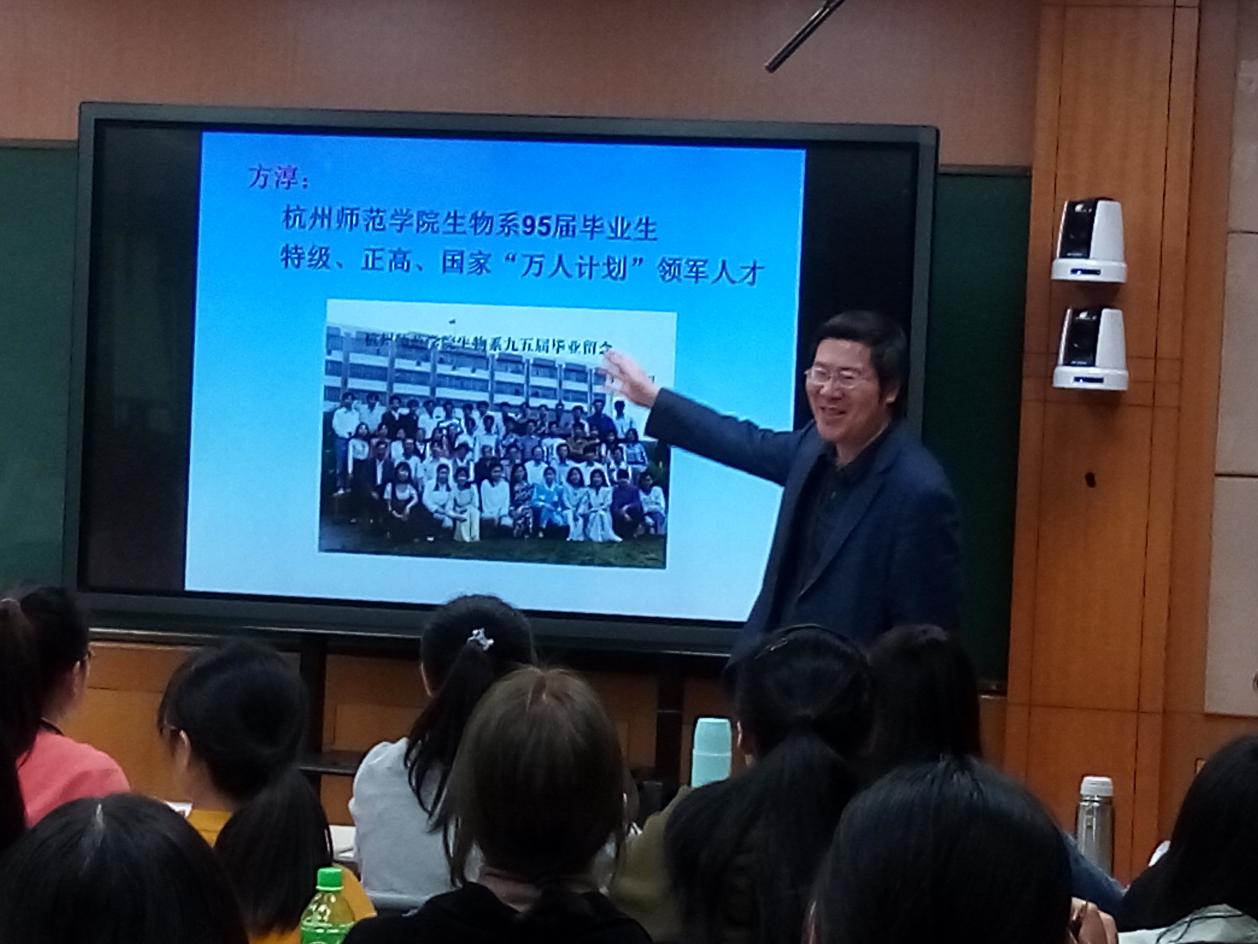 在见习期间,同学们观摩了保叔塔实验学校章吕烨老师的植物科学课和臧艳玲老师的压强科学课;参加了吴玲玲和任霄两位老师的主题班会;聆听了杭十四中特级教师方淳主讲的“关于生物教师入职及专业生成”的讲座。另外,同学们也观摩了老王论坛 2016级实习师范生的两节生物公开课。通过以上各种见习环节,同学们观摩到了优秀教师们高超的师范生技能和扎实的生物知识,以及班主任管理能力,同时促动了同学们积极思考自身职业发展和成长规划,提升了师范生教学技能。