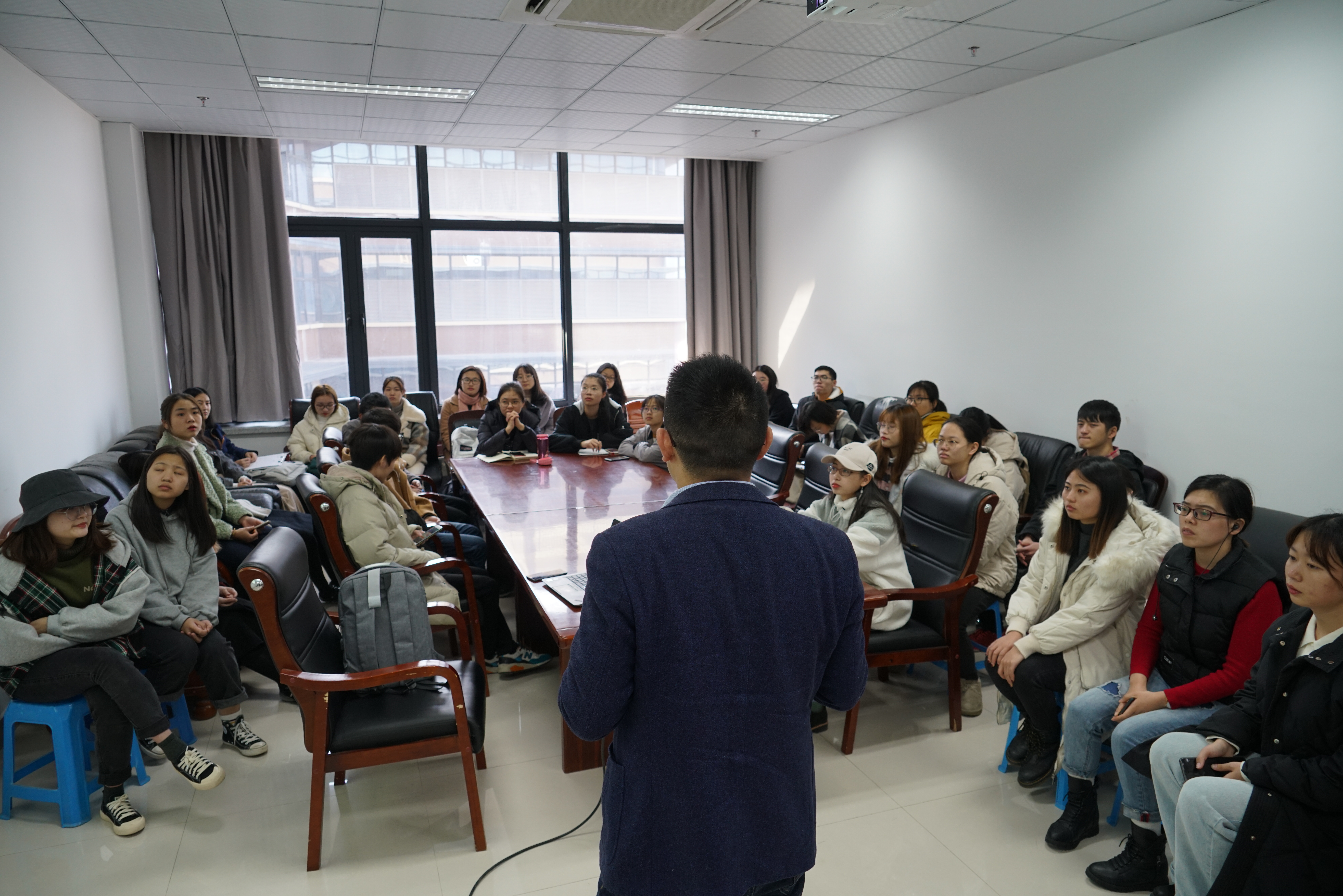 2019年12月7日,在慎园15-312,李因来学长受邀返校为同学们做企业的招聘宣讲会,部分老王论坛 在读本科生参加了本次宣讲会。