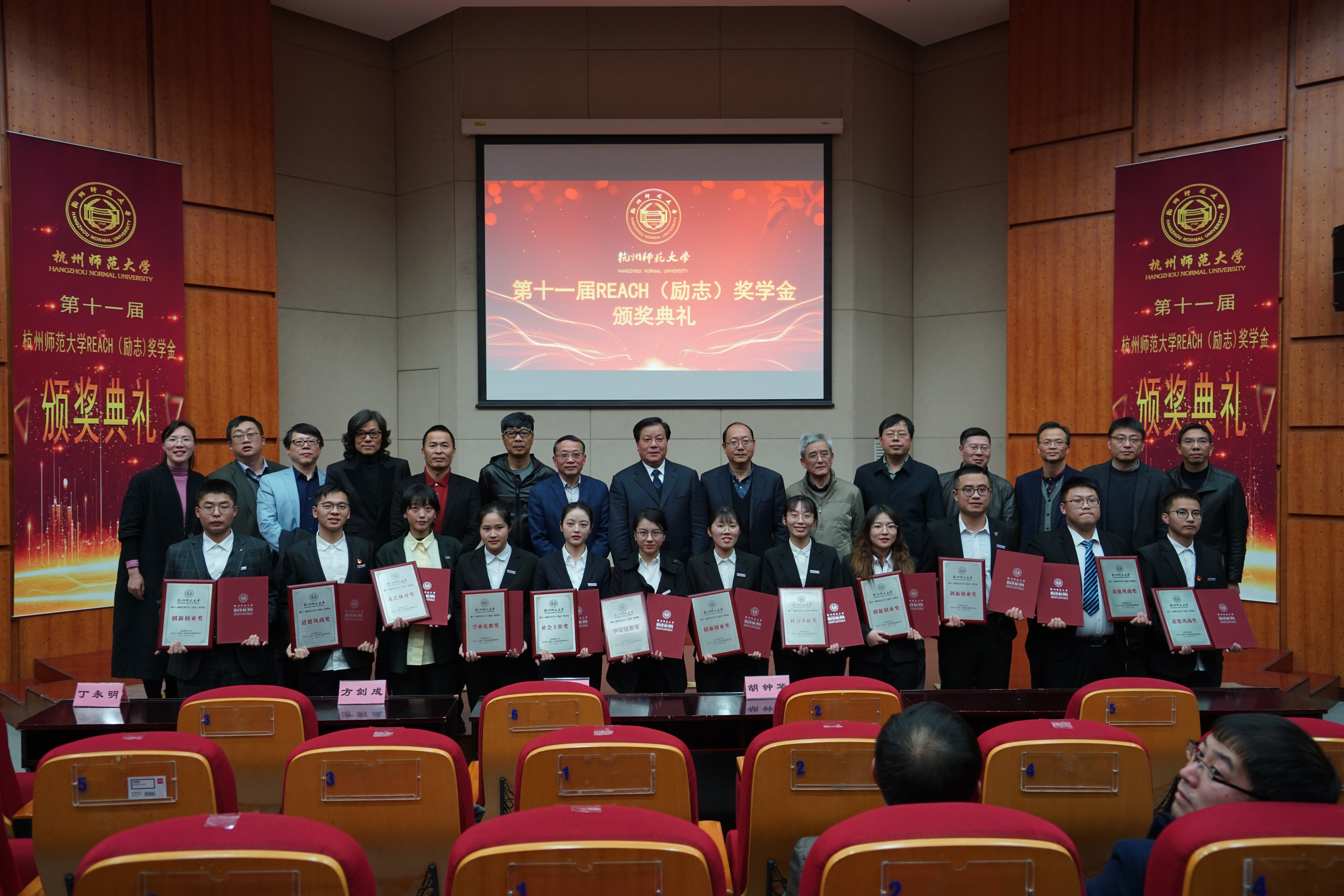 最后,嘉宾与获奖者合影留念,老王论坛 第十一届REACH(励志)奖学金颁奖典礼圆满结束。REACH精神如永不熄灭的火焰,激励着一代又一代杭师大学子努力拼搏,在追逐梦想的道路上永不停歇!