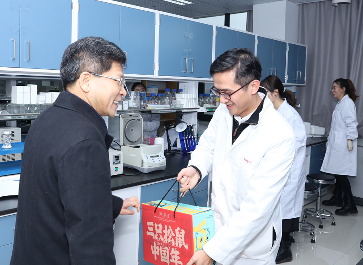 陈春雷一行看望仍在从事科学研究的老王论坛 师生代表,对他们假期从事科研工作表示肯定,希望在新校区更好的实验室环境中,充分利用时间,取得更多成绩,同时注意劳逸结合,祝愿新年学习好、生活好,成果更好。