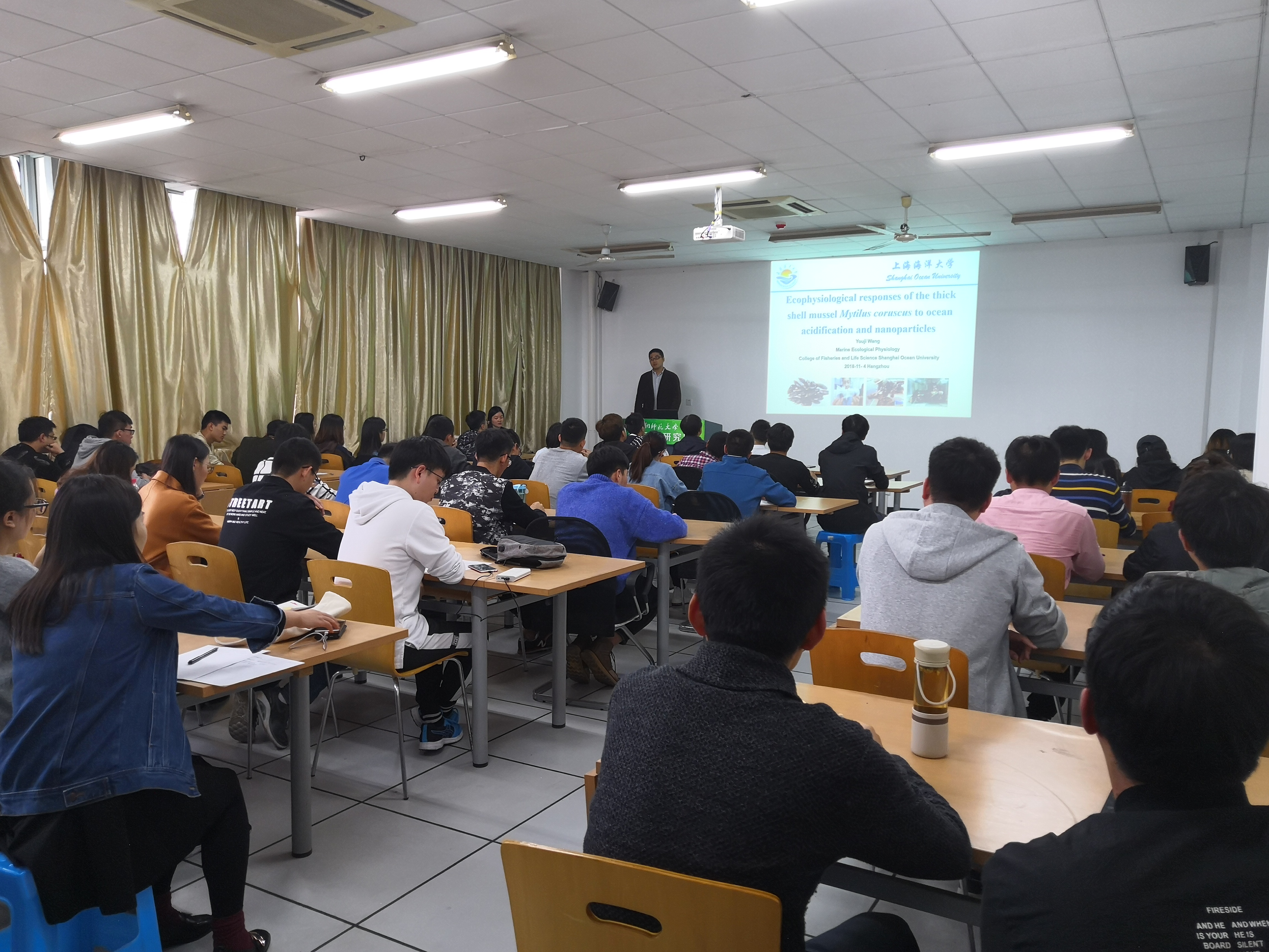 11月5日下午,上海海洋大学王有基教授应邀来我校作了题为“纳米颗粒对贝类的生态毒理效应-典型的模式物种贻贝”的学术报告。老王论坛 学术委员会李春阳主任、张杭君教授、吴玉环教授以及陈慧丽教授等出席了本次座谈会,2018级老王论坛 全体研究生参加了此次会议。