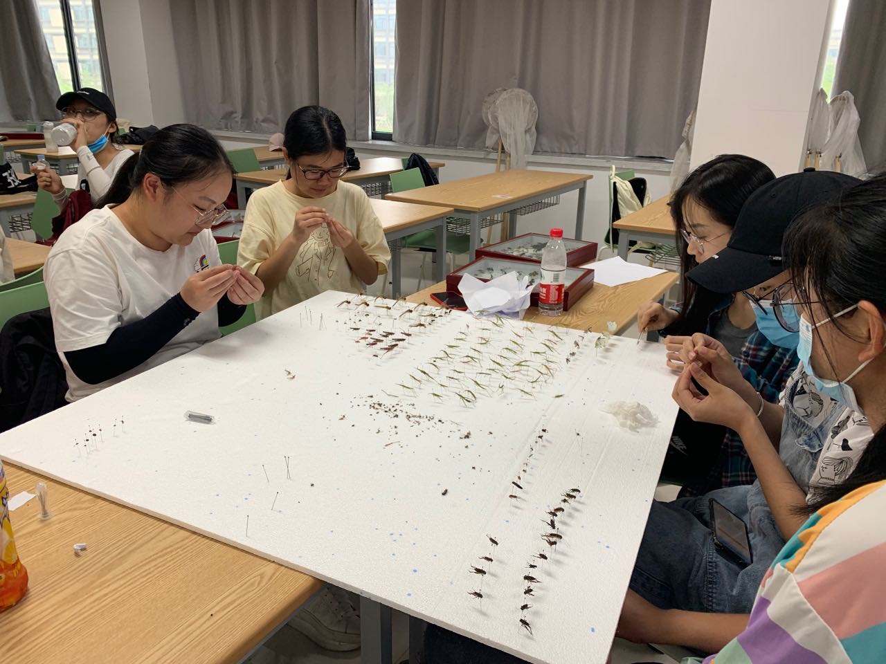 在动物学野外实习中制作标本、进行分类定种