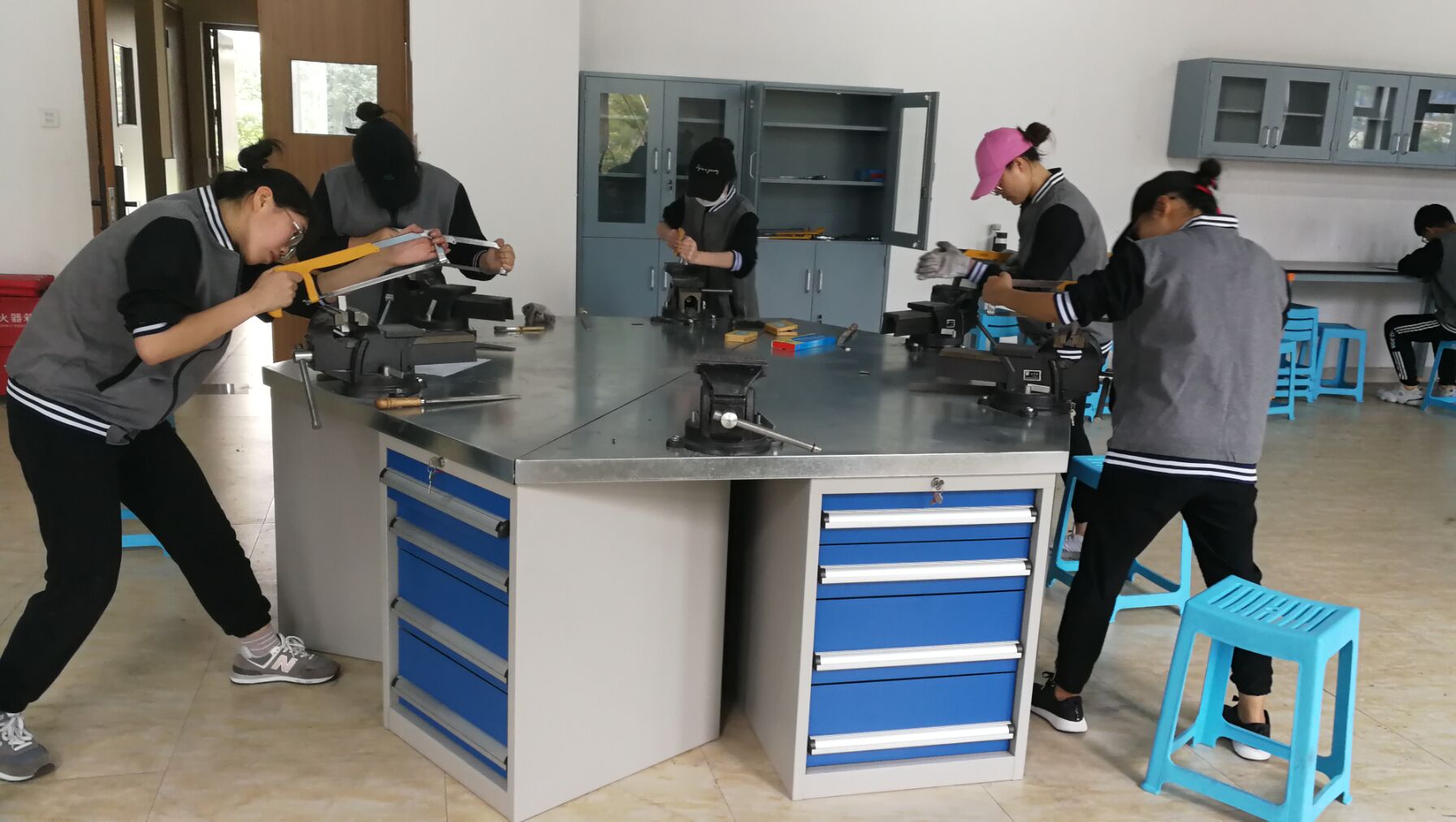 图2. 正在认真开展金工实习的环工181同学们