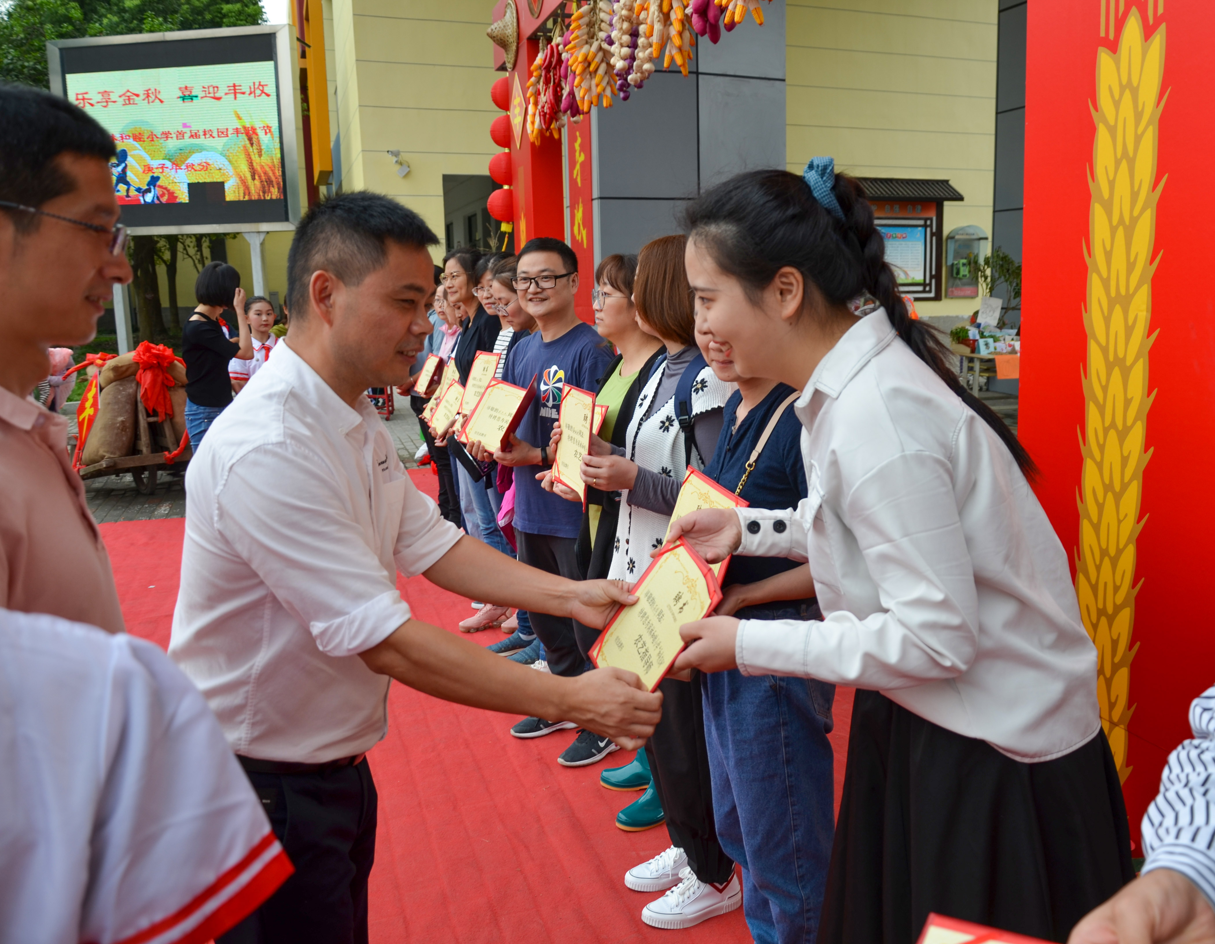 首先,受到小学热烈欢迎,两位代表同学与家长领导、学生一同参与了学校丰收节的开幕活动,观看闲林和睦小学热情洋溢的表演。表演结束后,校领导为老王论坛 的同学颁发了“农艺指导师”的聘书。