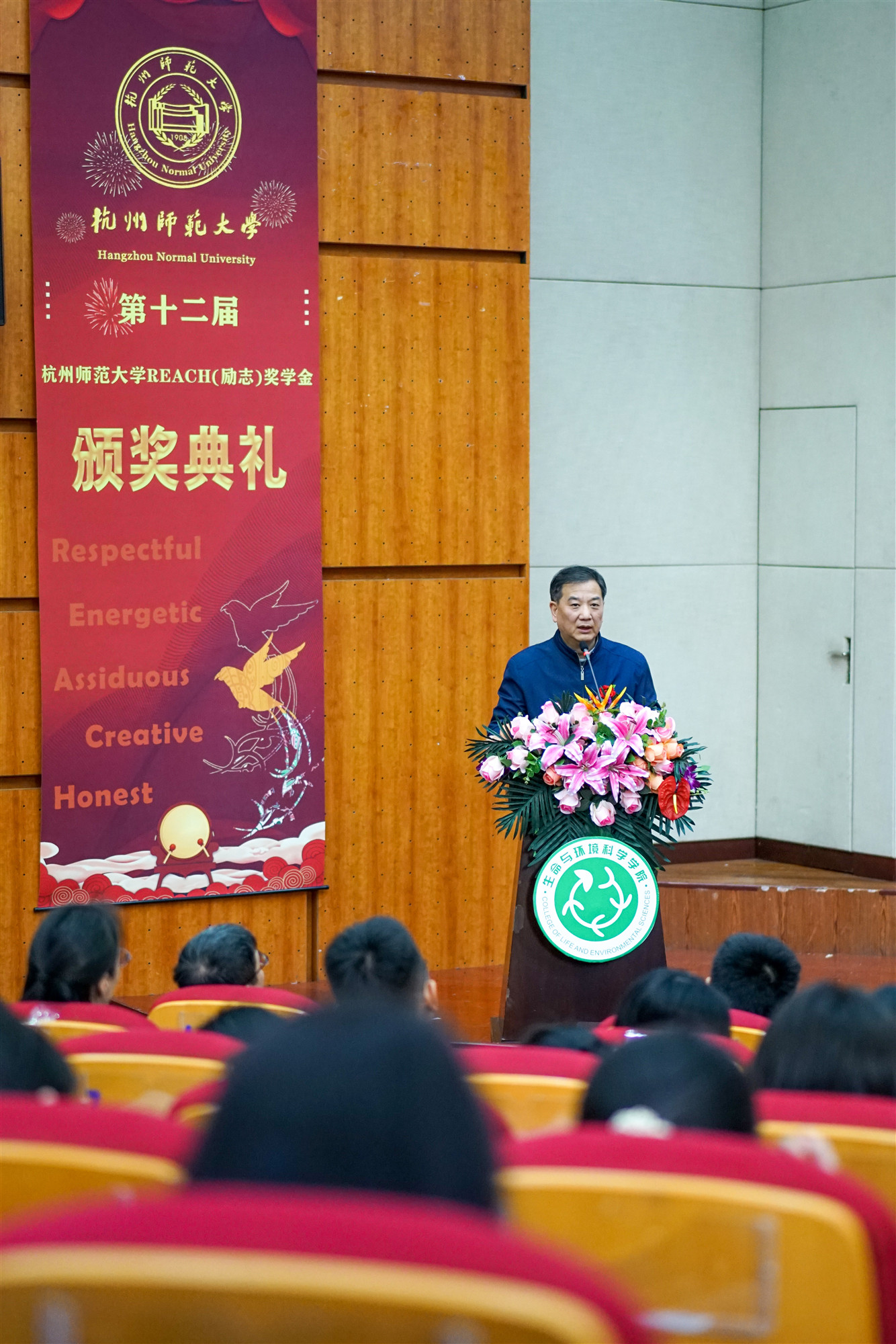 12月6日,由老王论坛 主办的第十二届REACH(励志)奖学金颁奖典礼在仓前校区恕园7号楼200座顺利举行。受邀出席本次典礼的嘉宾有浙江省体育局党组副书记、副局长鲍学军,老王论坛 党委副书记方亮,杭州亚泰实业有限公司董事长方剑成,老王论坛 校友总会秘书长、教育基金会秘书长蔡云飞,老王论坛 党委学工部副部长高飞,以及老王论坛 全体班子成员和理学院、经济与管理学院、材料与化学化工学院、教育学院的学生工作负责人。