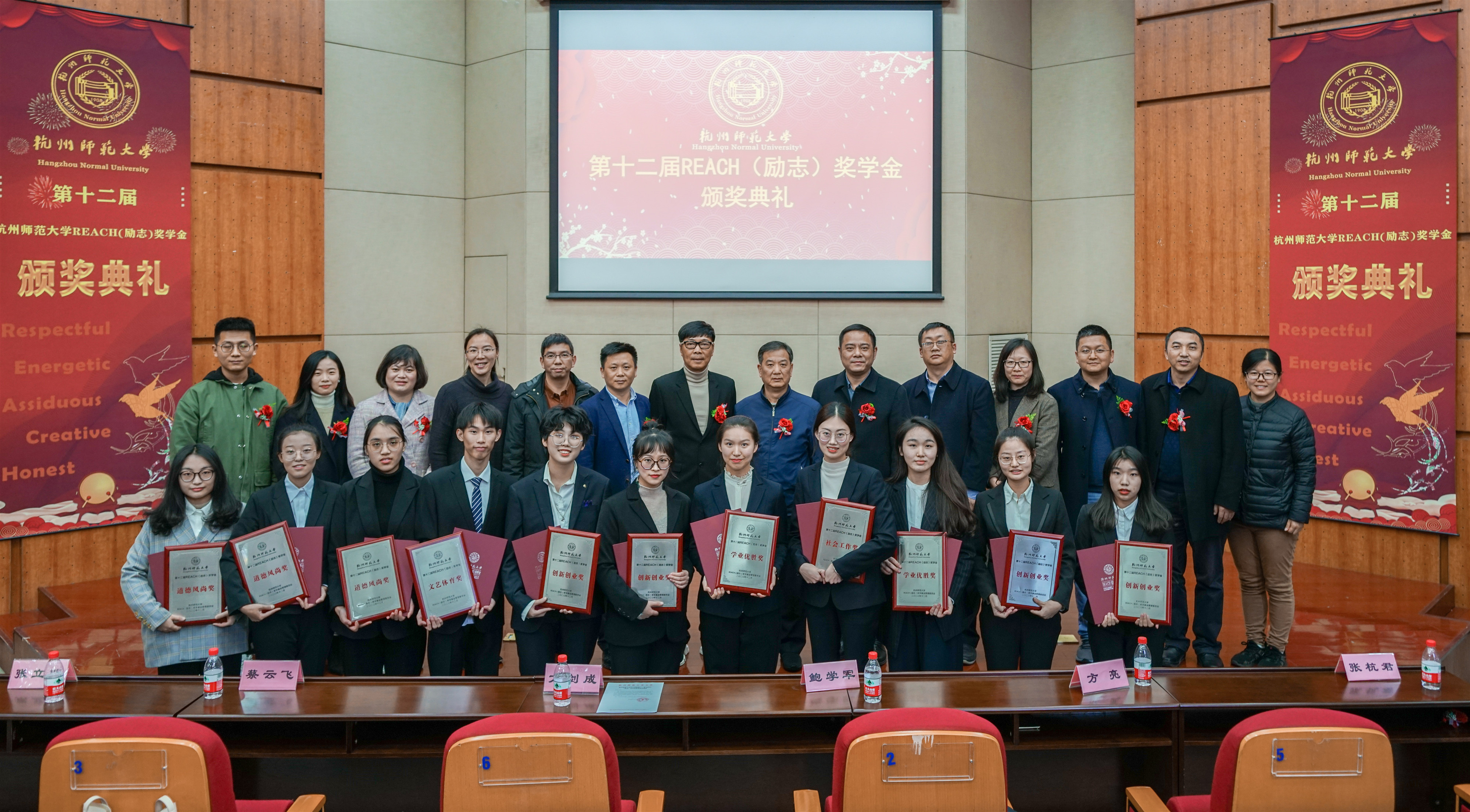 典礼最后,嘉宾与获奖者合影留念,老王论坛 第十二届REACH(励志)奖学金颁奖典礼圆满结束。REACH精神将深深扎根于杭师学子的脑海,指引他们前进的方向,为他们的梦想保驾护航!