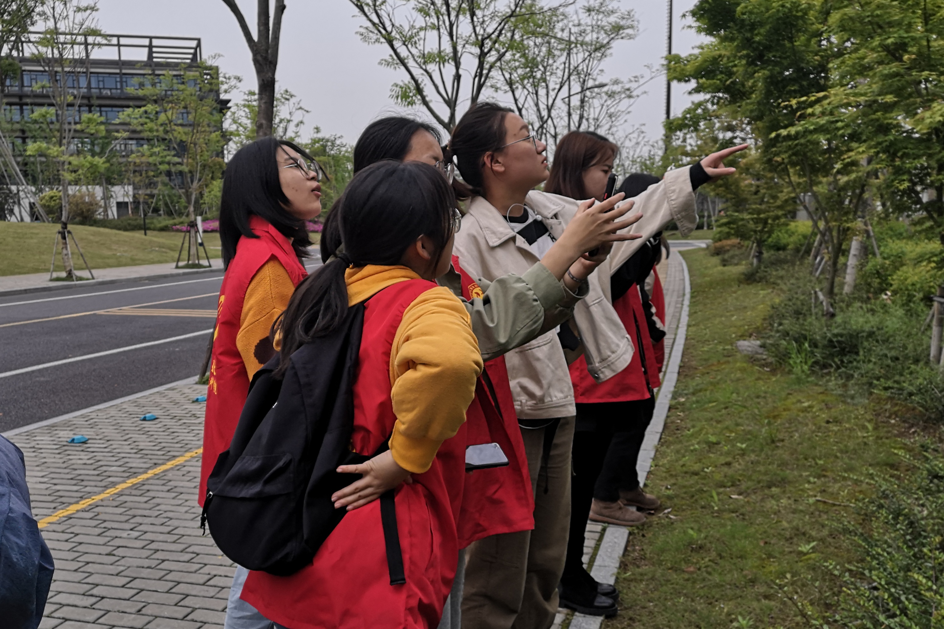 然后,每组小组长各带领5位志愿者到4个分区完成任务。小组长先进行了工作规划——两人拍照、一人识记、一人分类与计数、一人整合。同学们在调用自己所学知识外,还充分调用了网络上的各种不同形式的资源,在辛苦了三个多小时后,本次志愿活动终于迎来了尾声。各组在慎园餐厅交流各自进展及主要种类后集中签退并归还了志愿者服装。