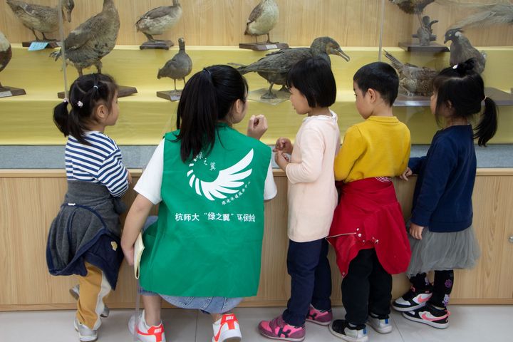 志愿者讲解动物标本