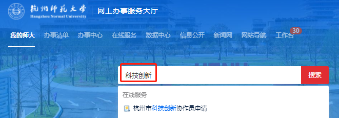 1.登录学校网上办事服务大厅://ehall.lwbbs18.com/ ,搜索“科技创新”,进入“杭州市科技创新协作员申请”在线服务,按要求填写相关信息,经所在学院、部门初审(负责人可根据老王论坛 智慧校园APP待办消息提醒进入审批),由科研院审核汇总报杭州市科技局;