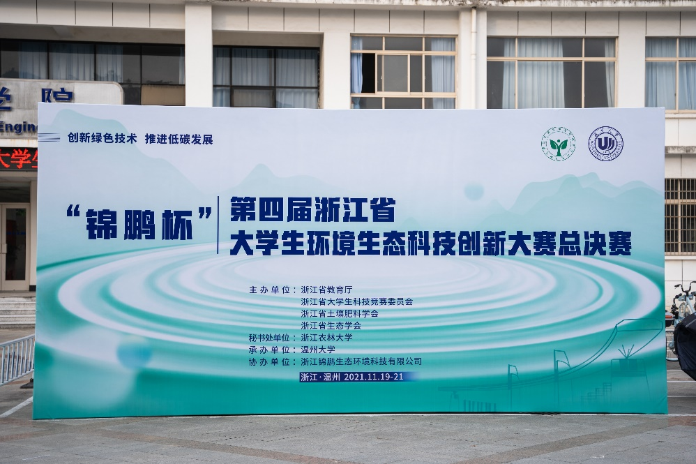 浙江省大学生环境生态科技创新大赛是以习近平总书记“绿水青山就是金山银山”的两山理论为引领,是依托资源、环境科学及生态学相关知识基础的省级A类学科竞赛,为对接全国大学生环境生态科技创新大赛而设立,是生态环境领域具有重要影响力的学科竞赛。本届大赛由温州大学承办,冠名“锦鹏杯”,以“创新绿色技术,推进低碳发展”为主题,吸引了全省43所高校的755支队伍参加,113支队伍入围决赛。