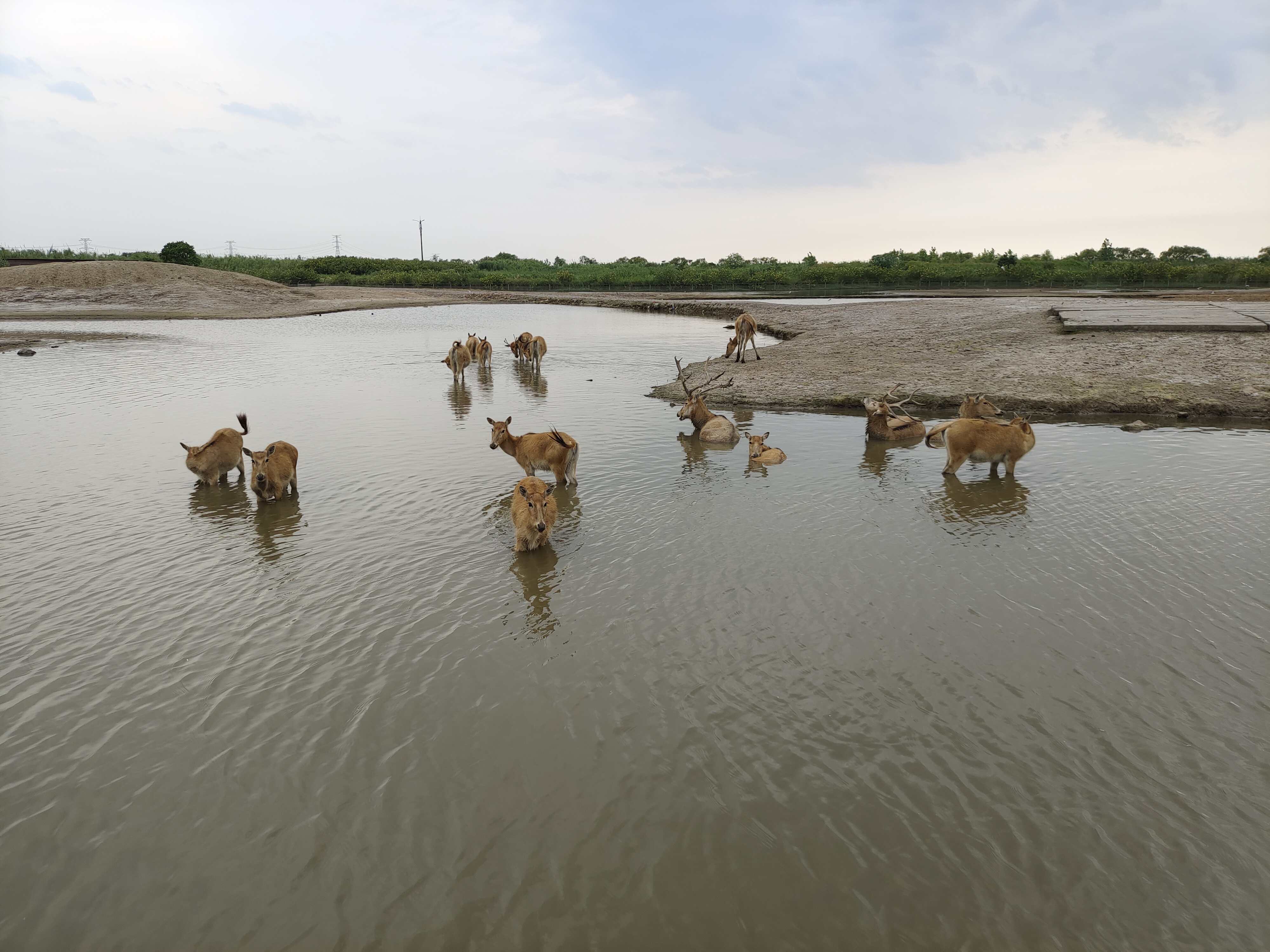 图6 杭州湾国家湿地公园麋鹿群