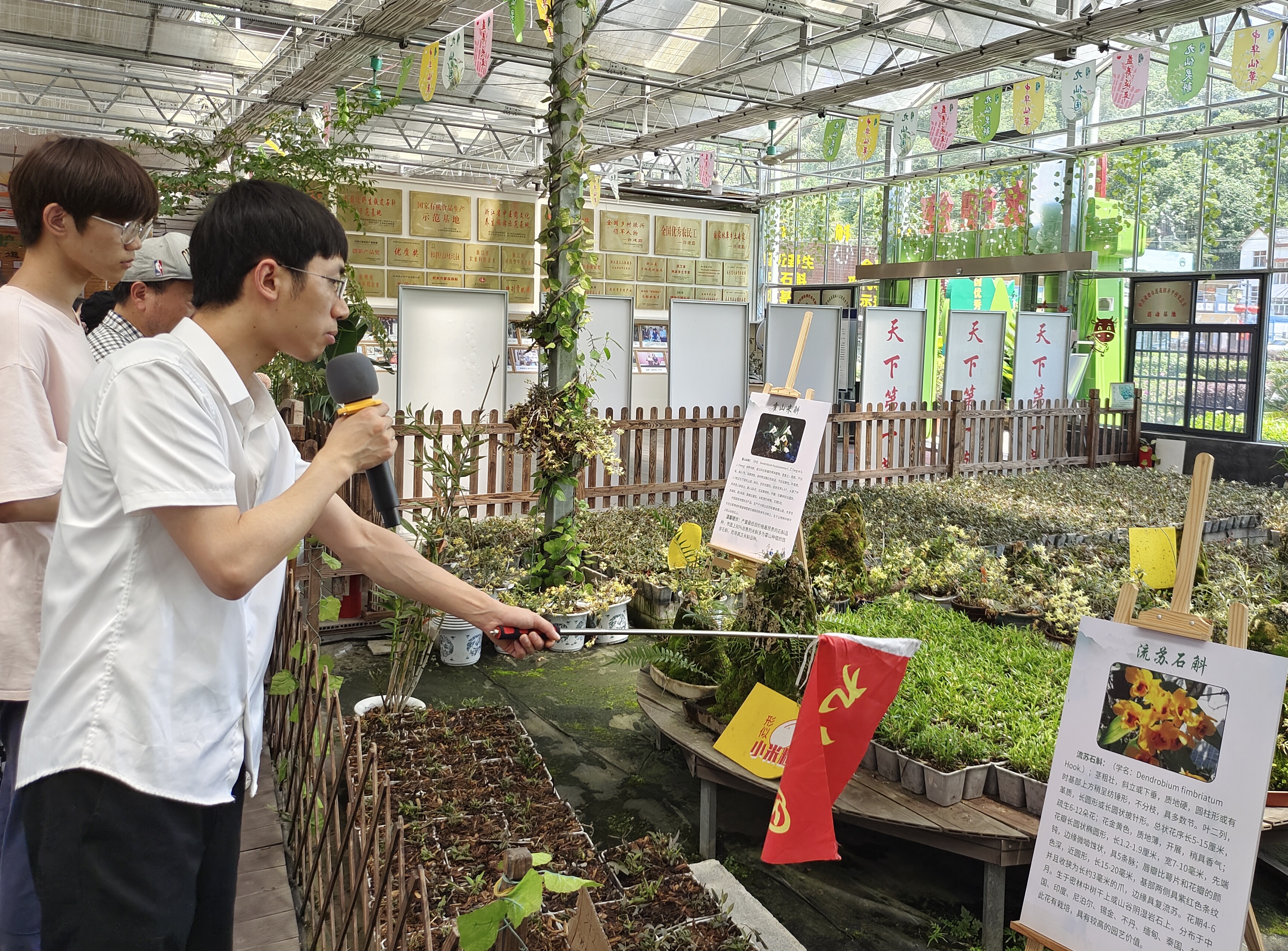 图4 讲解员讲解九仙石斛种植基地的石斛
