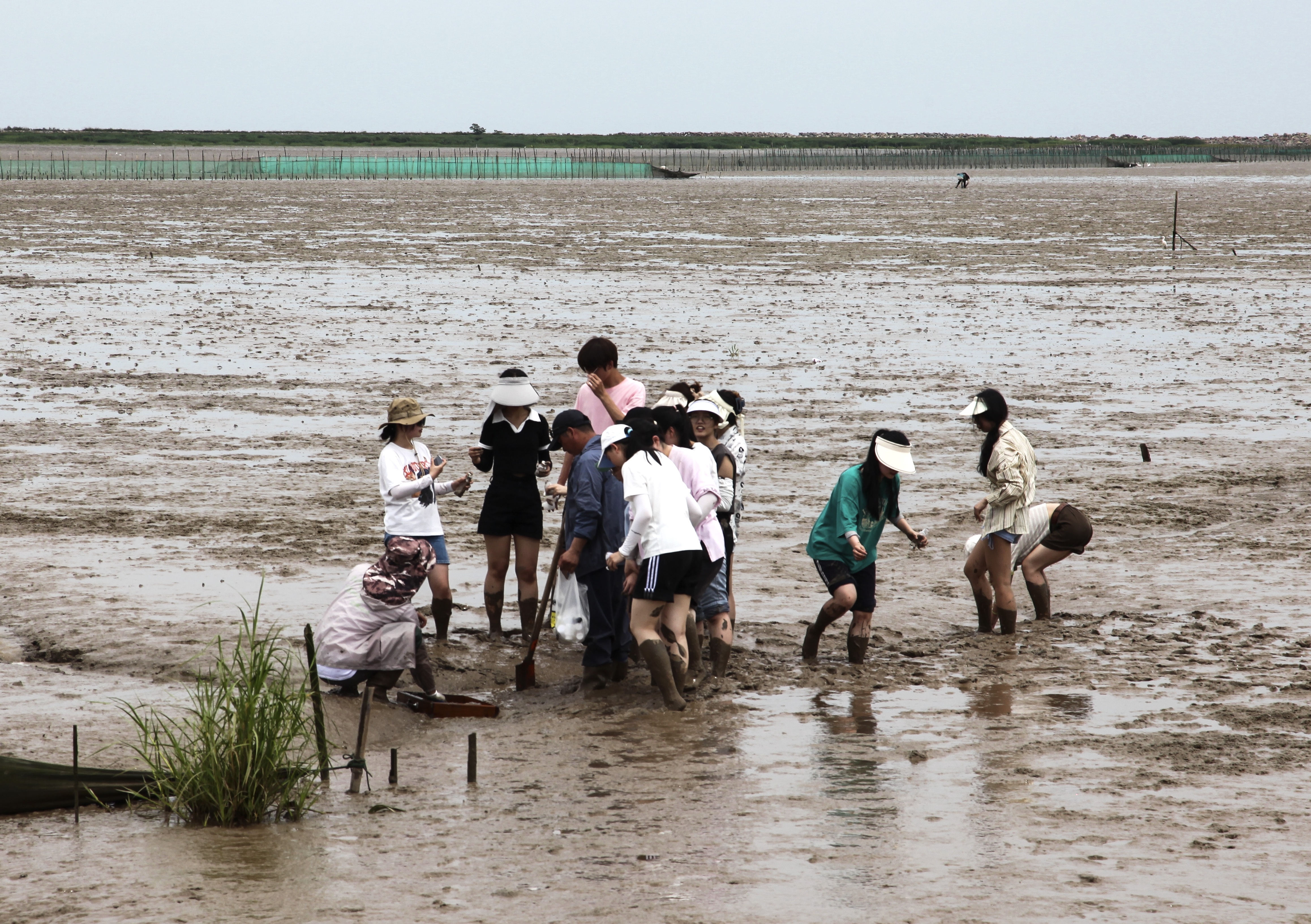 图5 同学们在杭州湾滩涂调查底栖动物