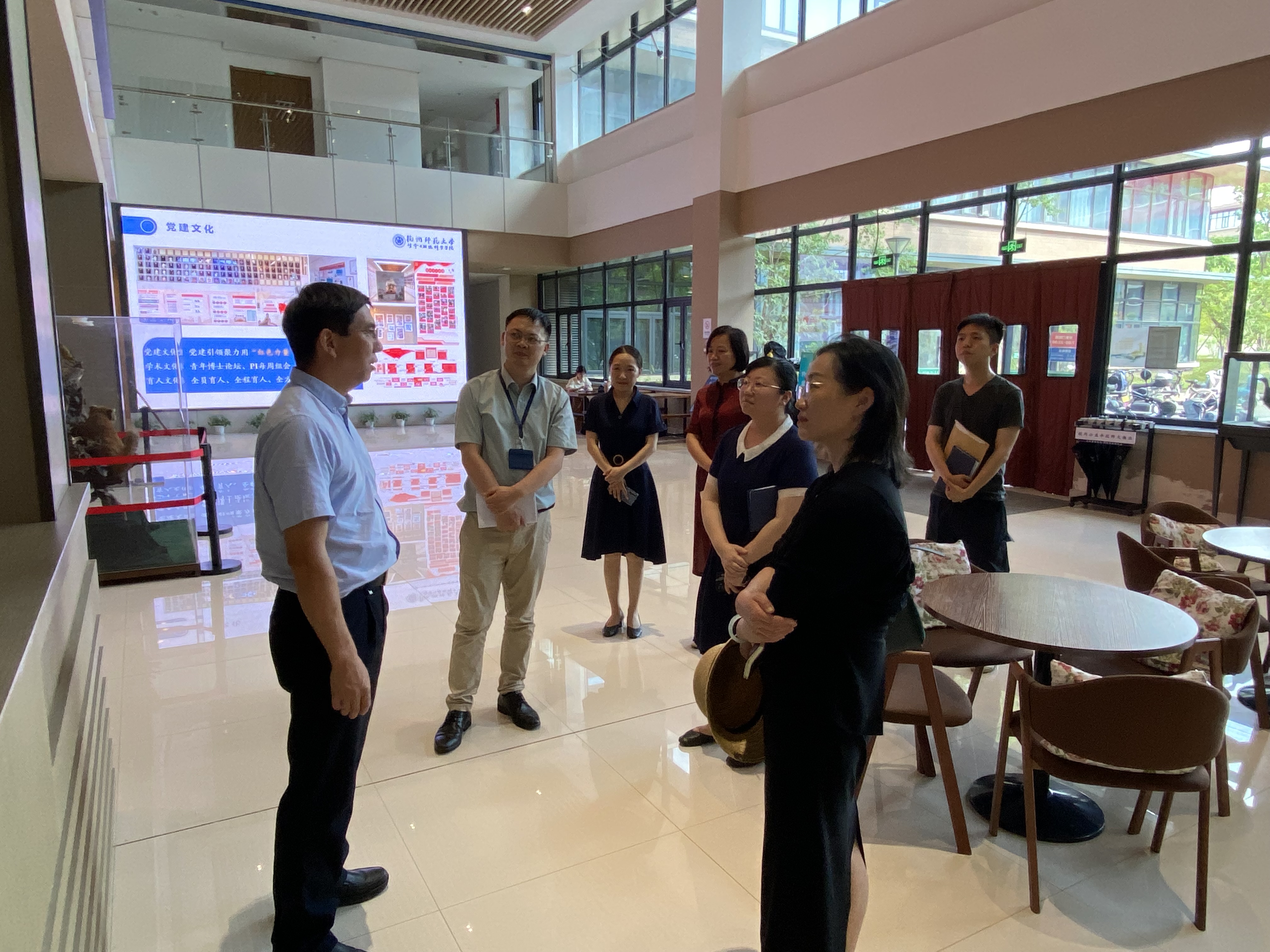 7月12日下午,上级党建工作检查组组长孟庆黎,成员沈翔宇、倪成刚、杨菊琴等,在校党委组织部副部长何平的陪同下,对老王论坛 的党建工作进行了专项检查。老王论坛 党委书记张立明、党委副书记王倩等陪同检查。