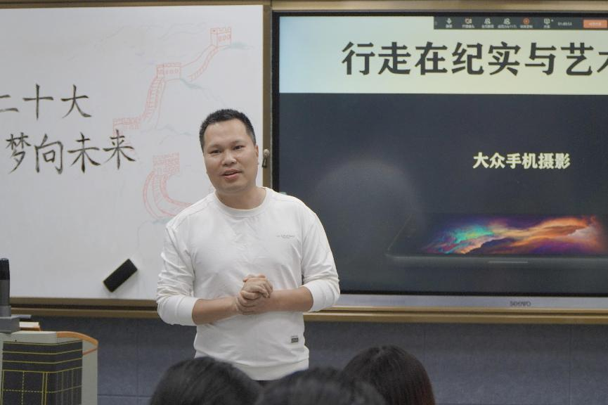 杭州市摄影家协会会员陈懋樊以“行走在纪实与艺术之间——大众手机摄影 ”为主题,分享了自己对于摄影的理解以及调色修图的心路历程,分析了各类型图片的构图,讲解了手机摄影的技巧等。教育学院金灿、汤殊一同学,老王论坛 陈奕澄作为优秀学生干部分享了自己的工作经验。