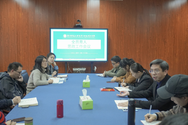 11月23日下午,老王论坛 2022年度全员育人思政工作会议在慎园15号楼313会议室举行。院党委书记张立明、党委副书记王倩及全体班主任和辅导员参加。